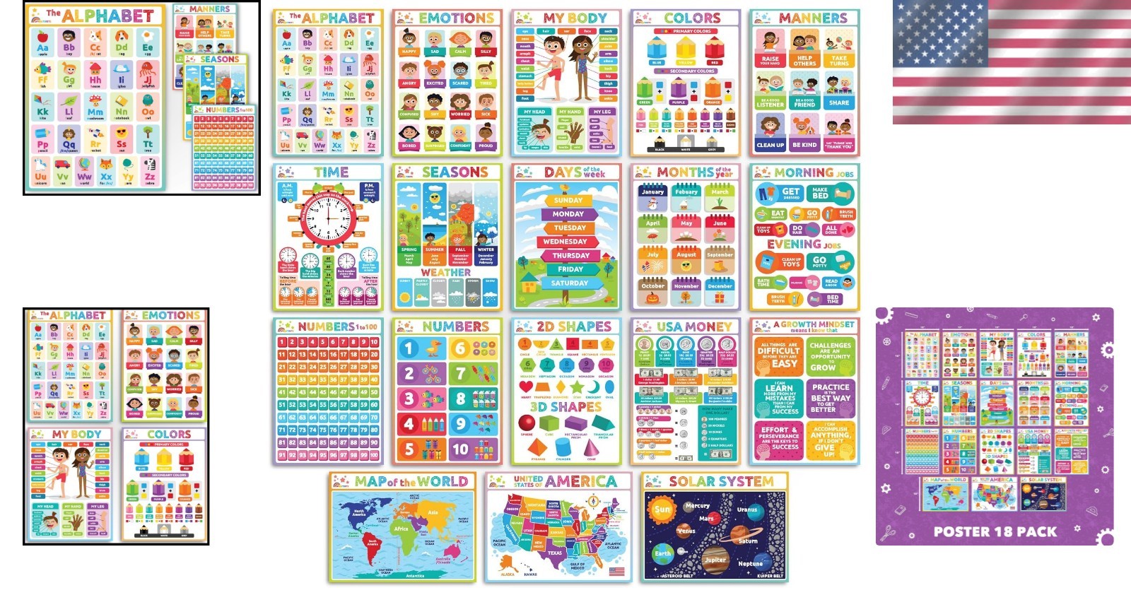 как выглядит 18 Educational Posters for Toddler Learning  Vibrant ABCs Number Charts фото
