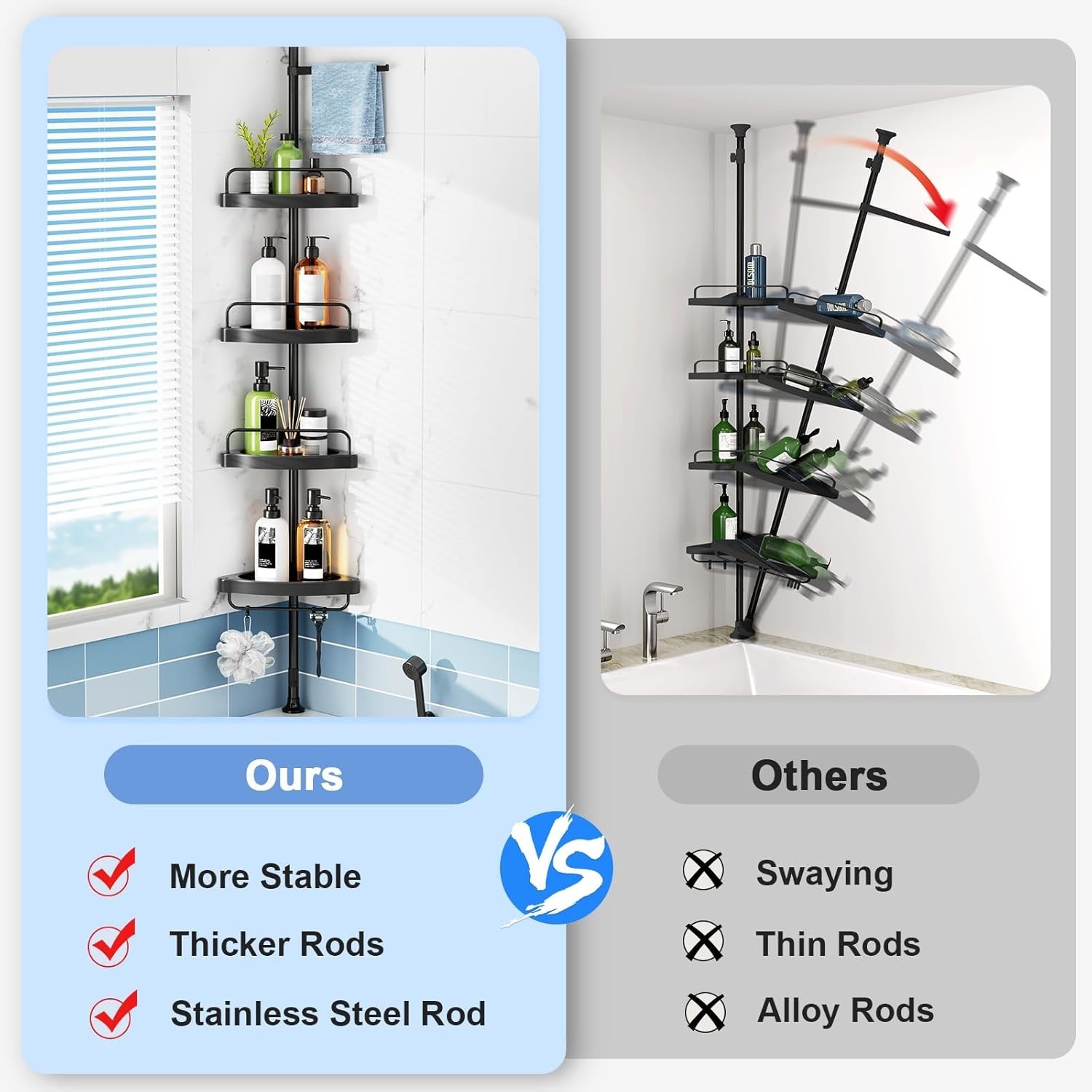 Elegant 4-Tier Corner Shower Caddy - Adjustable Tension Pole Organizer in Black