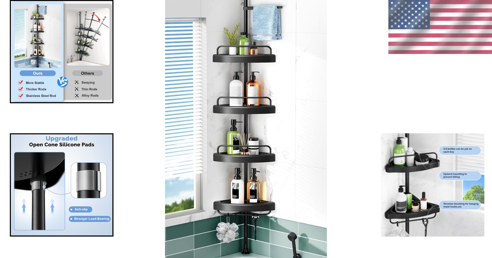 как выглядит Elegant 4-Tier Corner Shower Caddy - Adjustable Tension Pole Organizer in Black фото