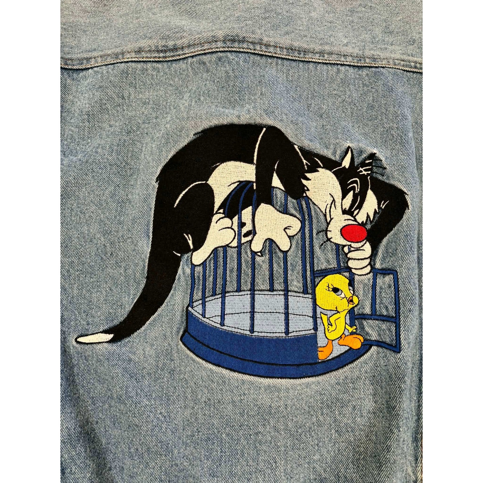 как выглядит Vintage 1995 Acme Clothing Looney Tunes Sylvester Tweety Denim Jacket Mens M фото