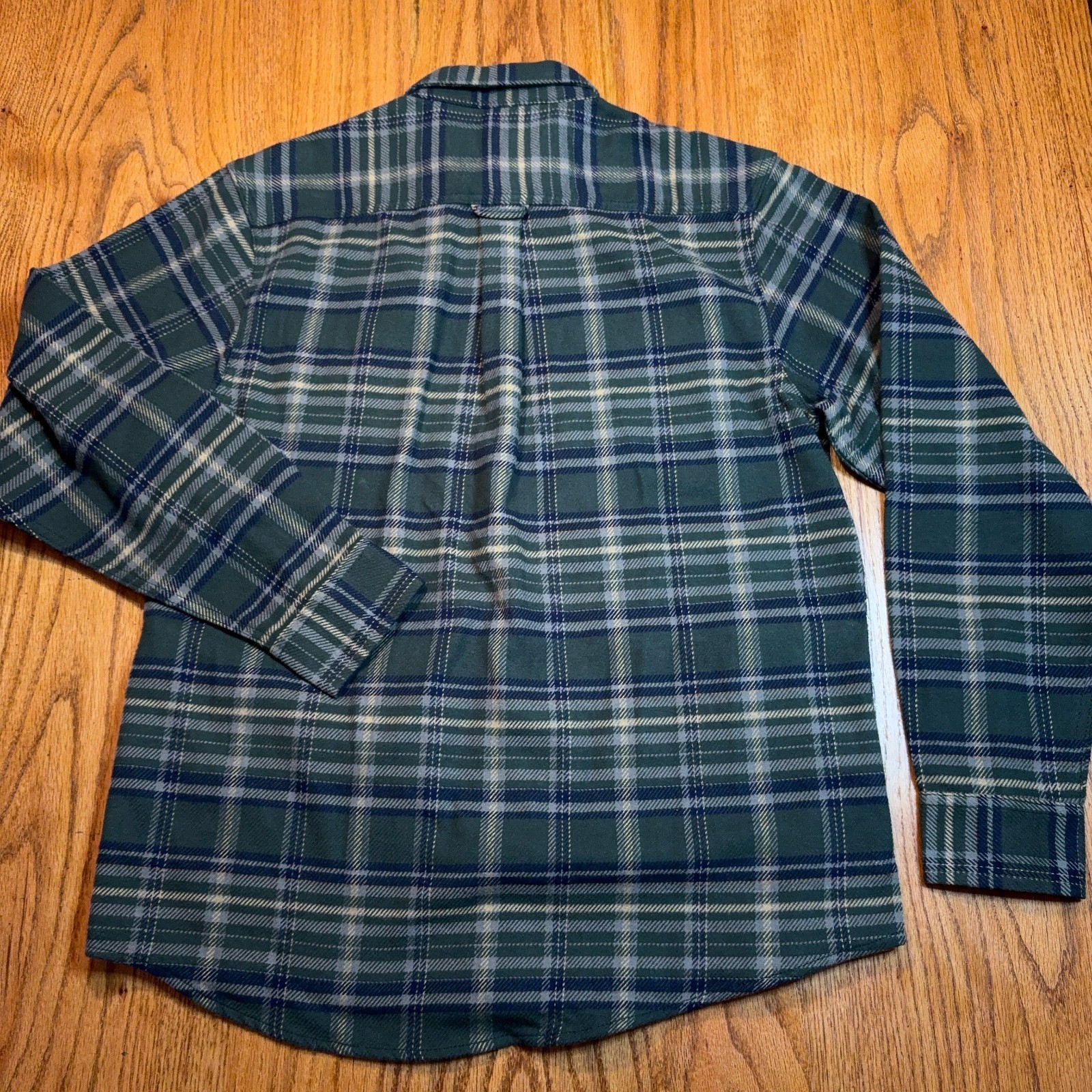 как выглядит Woolrich Shirt Mens Large Plaid Heavy Flannel Shacket Pockets Outdoor Green Blue фото