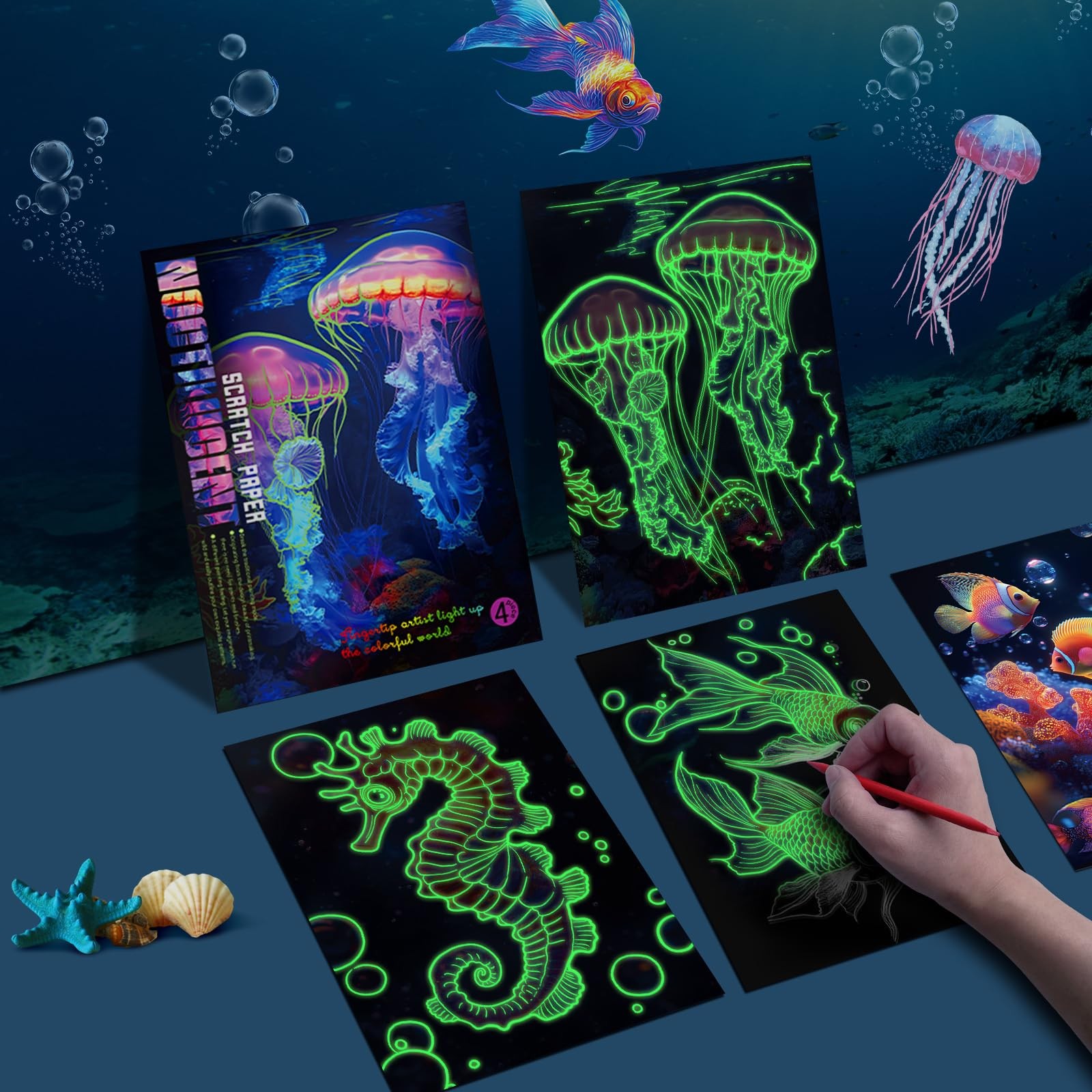 Scratch Art for Adults Teens,4 Sheets Glow in The Dark Rainbow Scratch ,Bea...