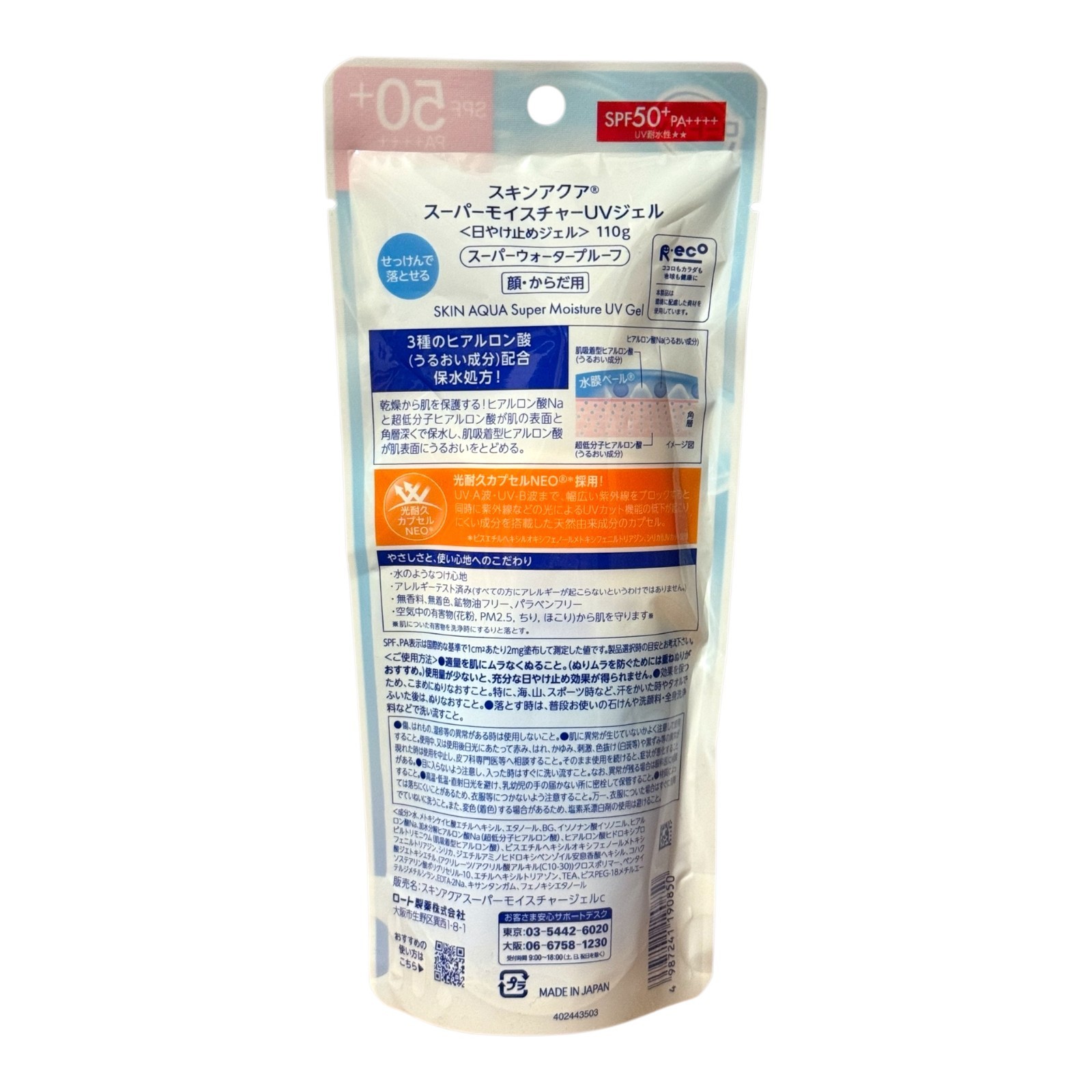 Rohto Skin Aqua Super Moisture UV Gel SPF50 PA Lightweight 110g