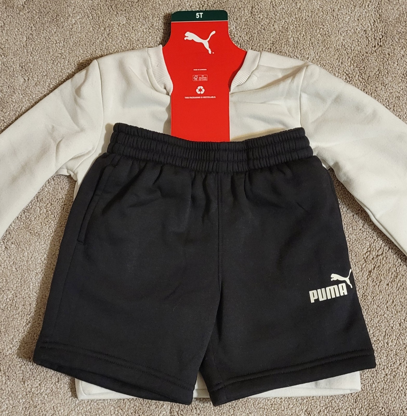 Boy's NWT Puma 2 Piece Set Sweatshirt and Shorts Size 5T Cream Black