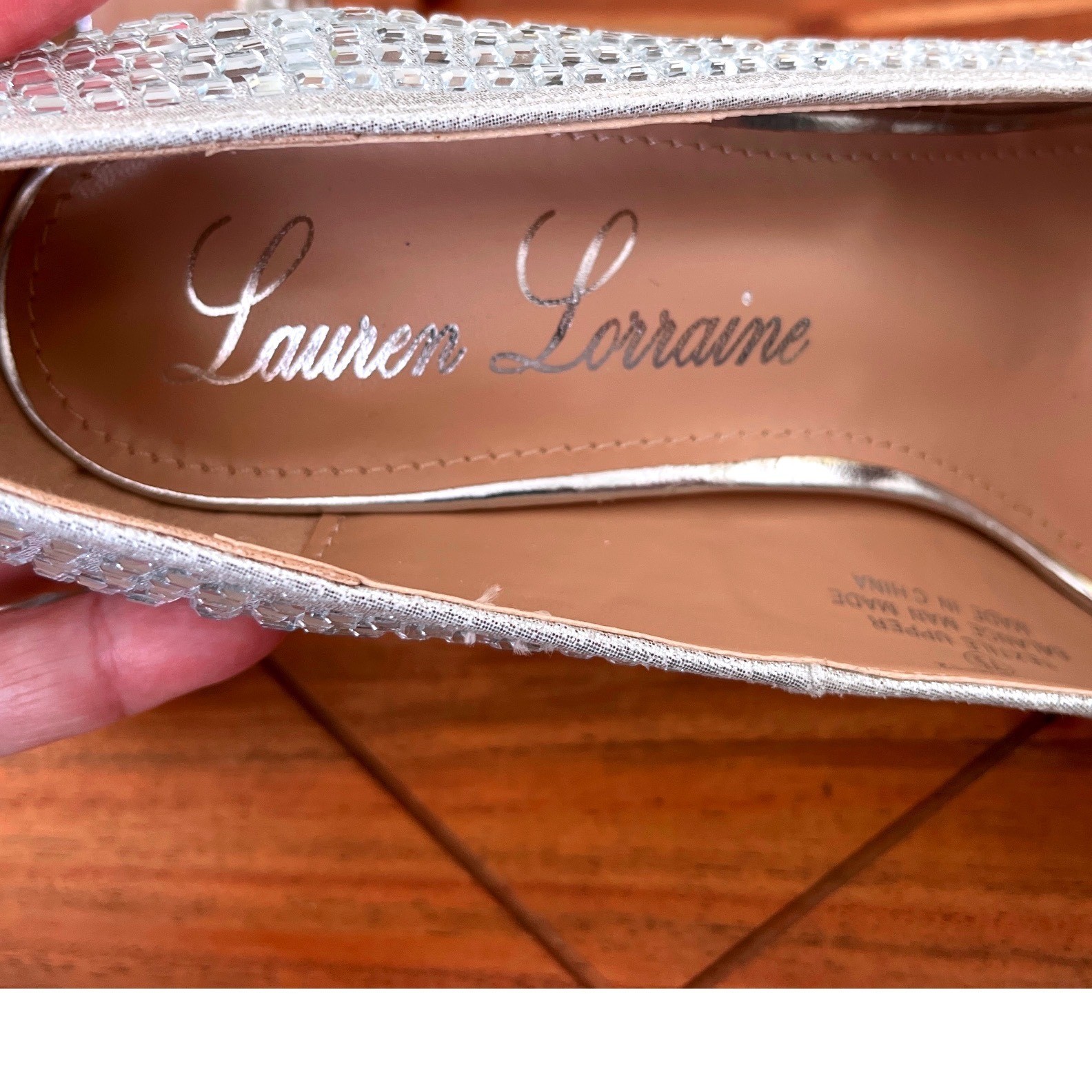 Lauren Lorraine Candie 12 Pump Silver Crystal Embellished Peep Toe Heels S 7.5