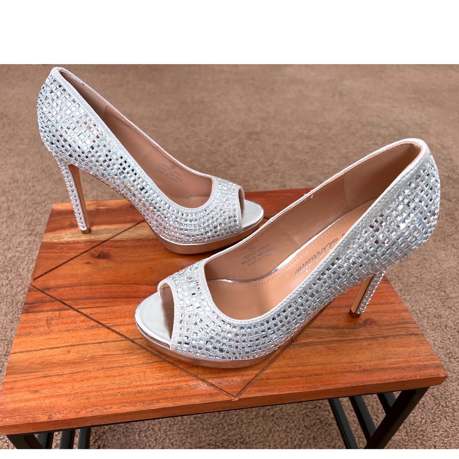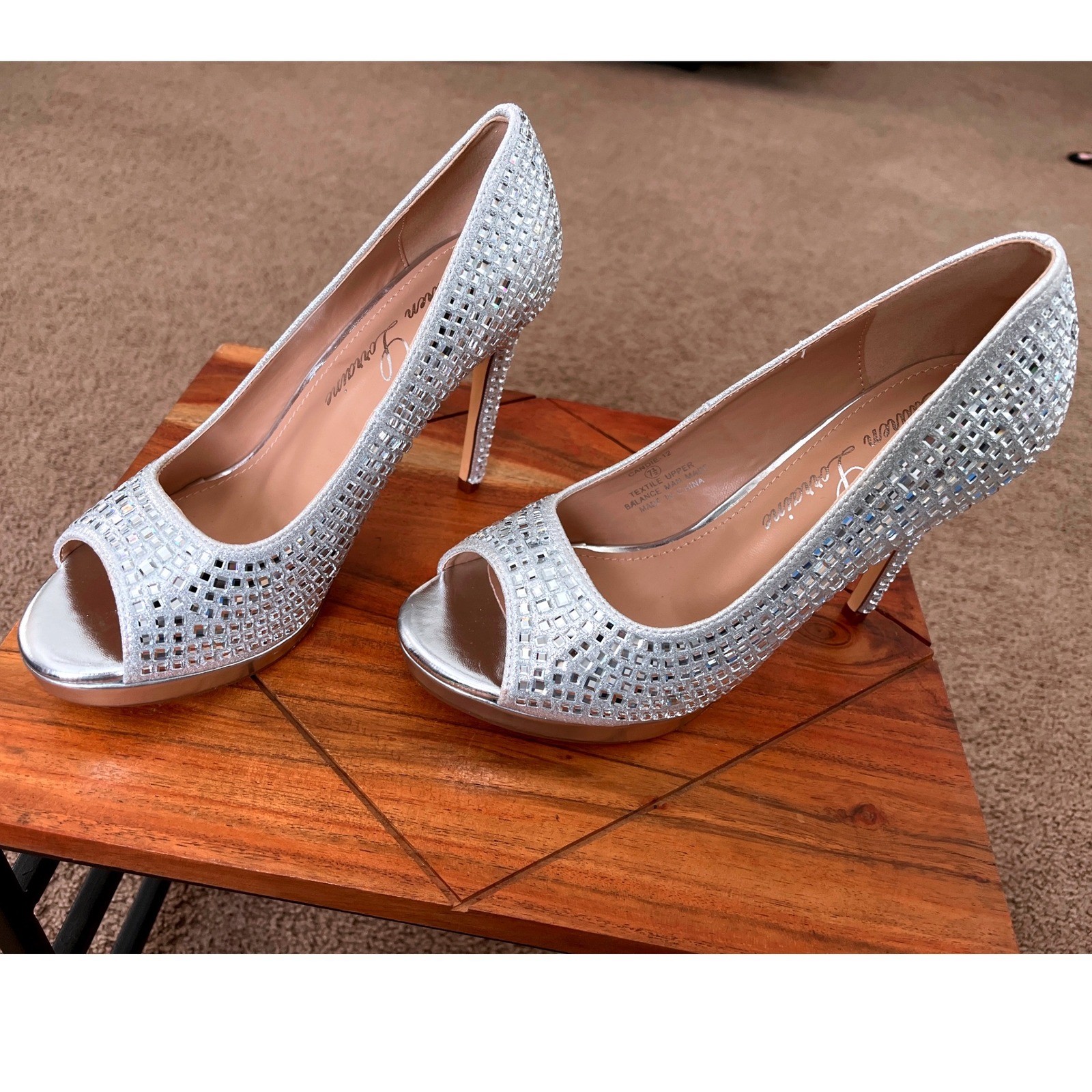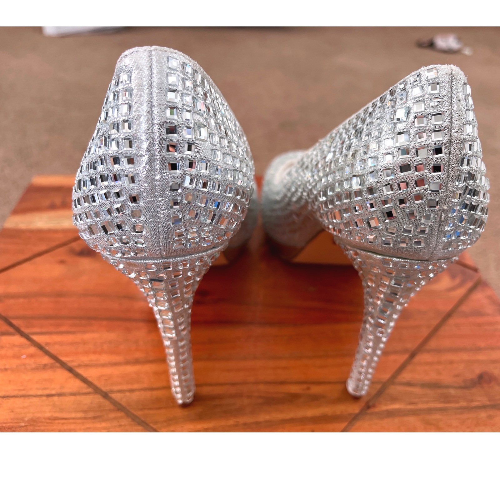 как выглядит Lauren Lorraine Candie 12 Pump Silver Crystal Embellished Peep Toe Heels S 7.5 фото