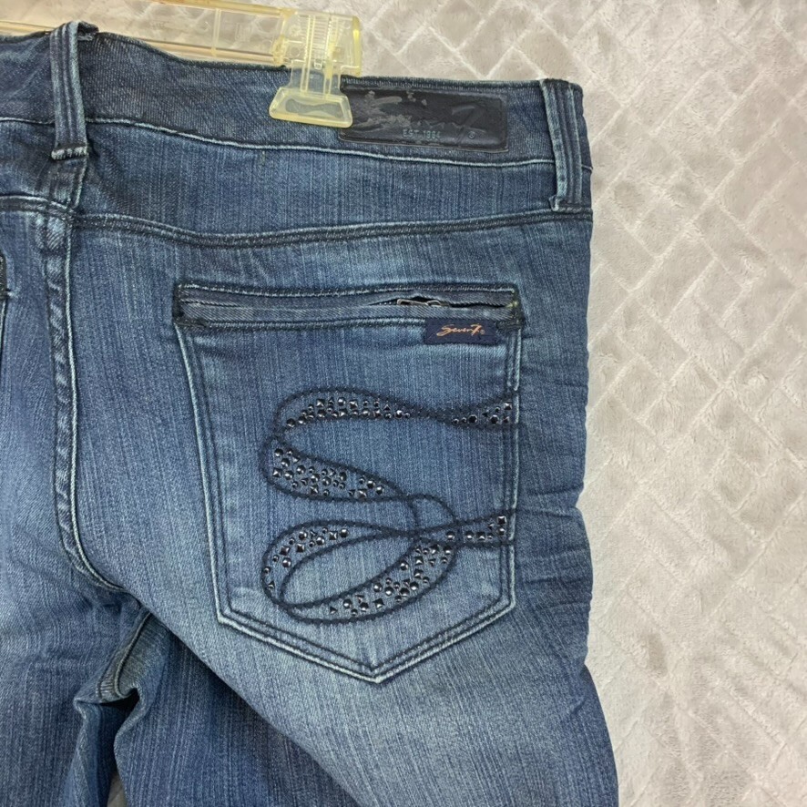 как выглядит Seven7 Jeans Womans 12 Denim Blue Straight Leg Dark Wash Rhinestone Pockets фото
