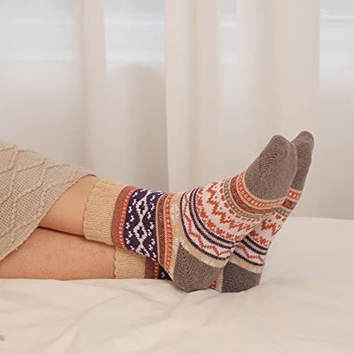 5 Pairs Wool Socks - Warm Socks Vintage Cozy Socks, Thick Knit Multicolor