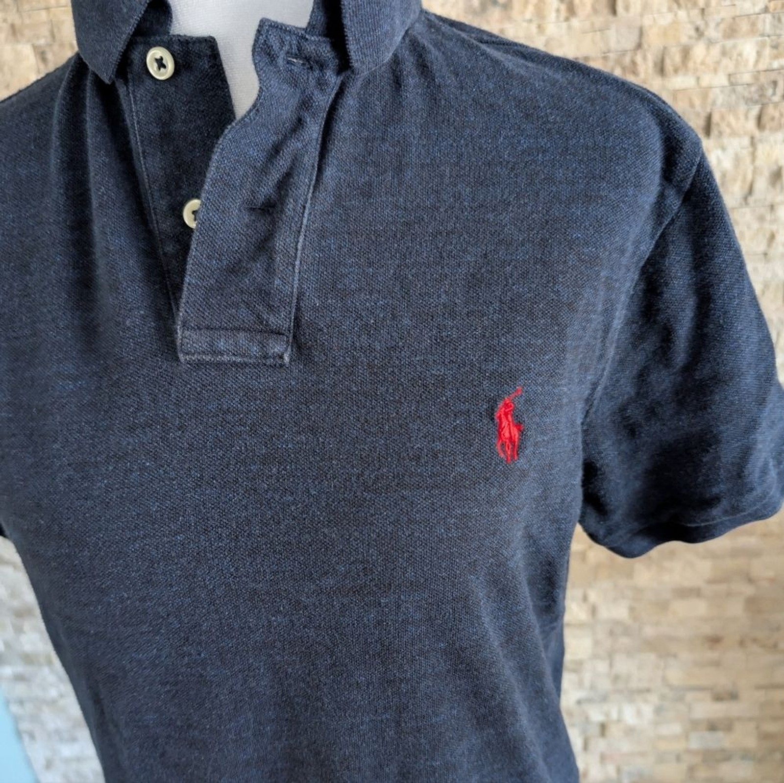 как выглядит Polo Ralph Lauren Mens Custom Slim Fit Polo Shirt Dark Navy Blue Prep Sz S фото