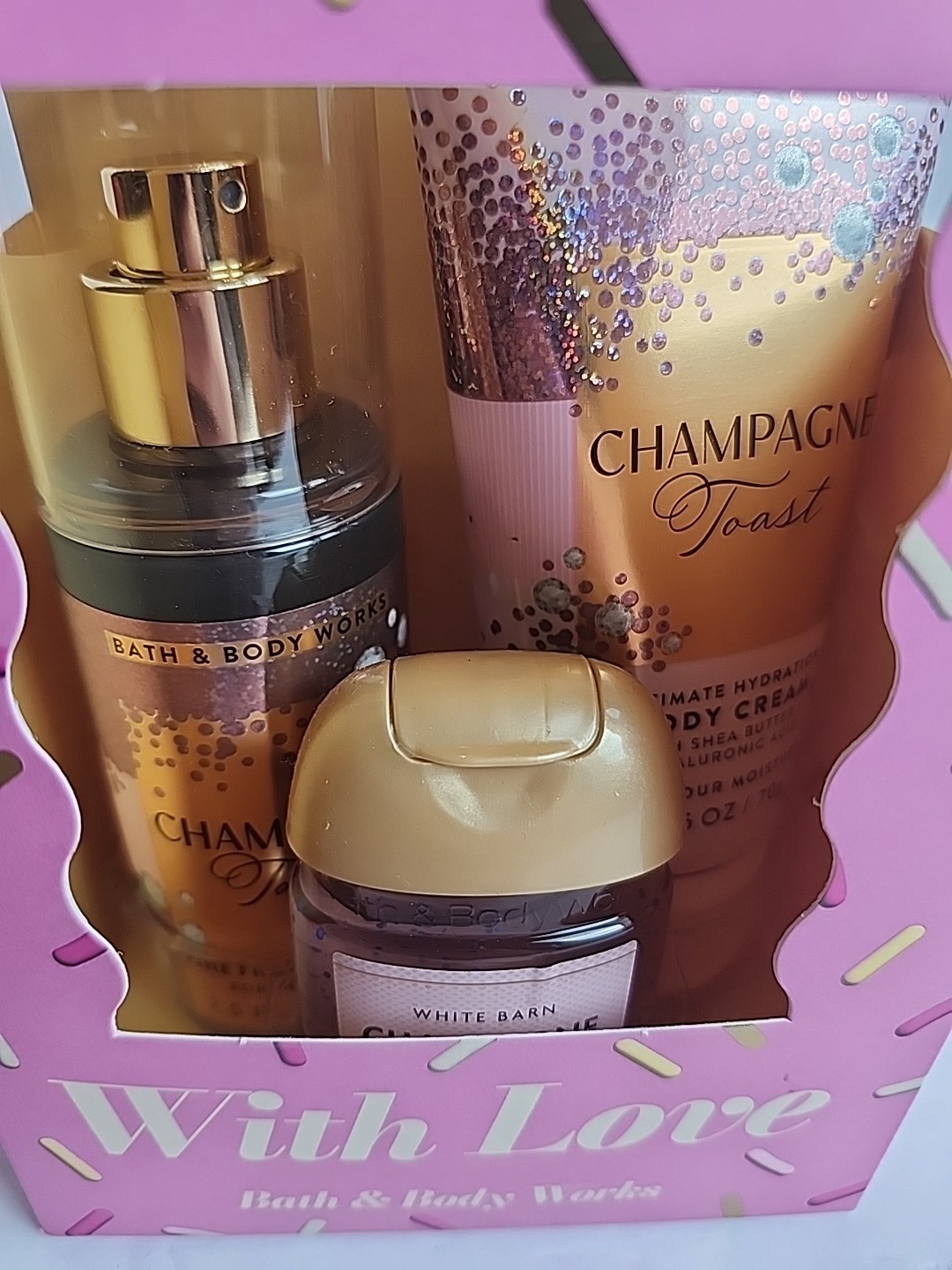 как выглядит Bath Body Works Champagne Toast Mini Gift Set Travel Mist/lotion/sanitizer NIB фото