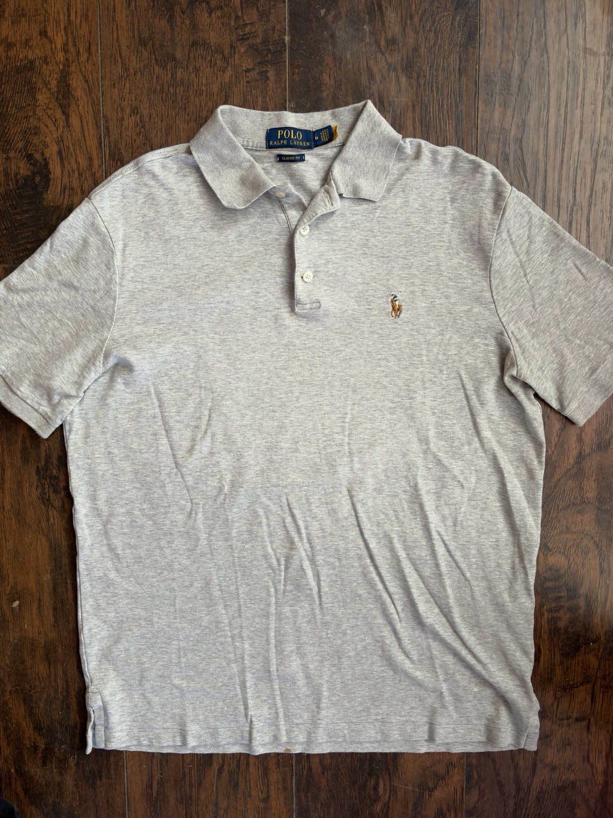 как выглядит Polo Ralph Lauren Gray Polo Shirt M Classic Fit Short Sleeve Button Embroidered фото