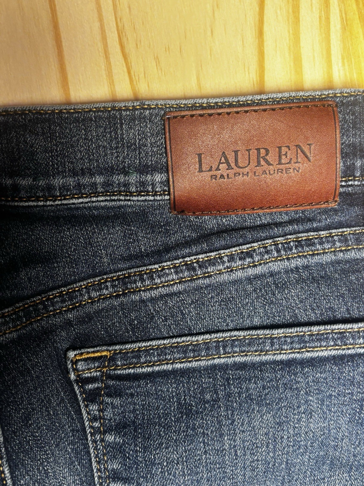 как выглядит Lauren Ralph Lauren Dark Blue Denim Straight Jeans 5-Pocket Button Logo фото
