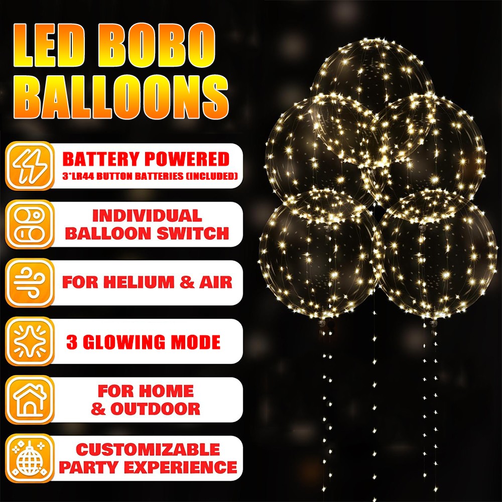 10PCS LED Light Up BOBO Balloons Decor w/ String Lights Birthday Wedding Party