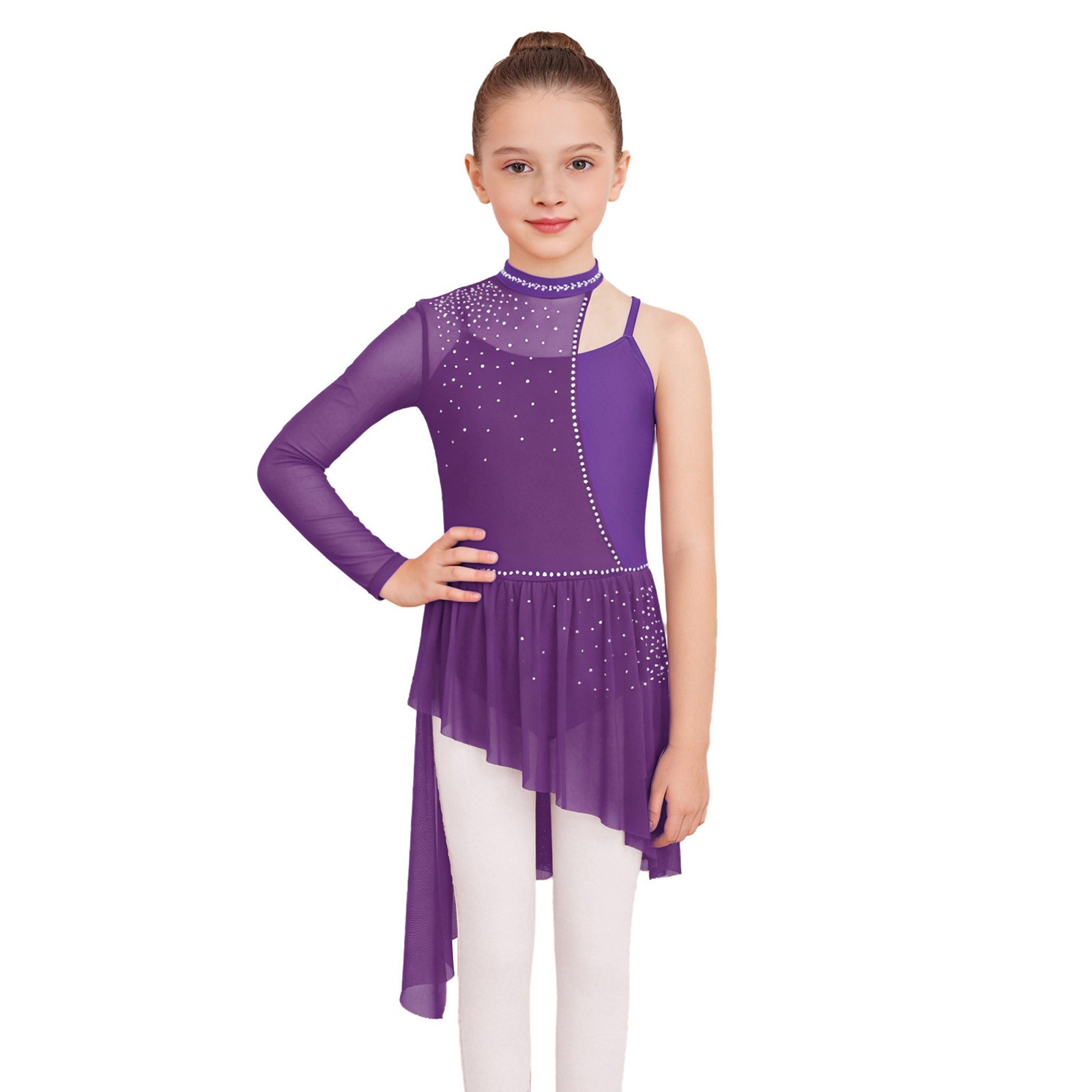 как выглядит Kids Girls Leotard Latin Lyrical Mesh Dresses Spaghetti Dancewear Rumba Stage фото