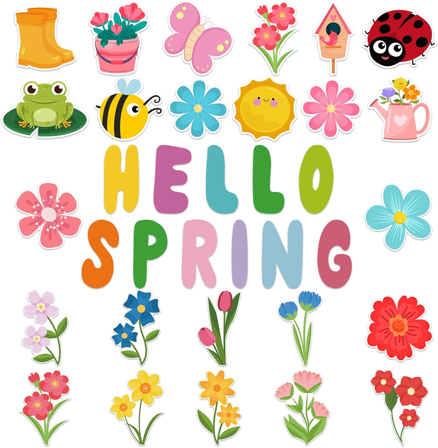 70-Piece Spring Cutouts for Bulletin Board Decor - Flowers Animals