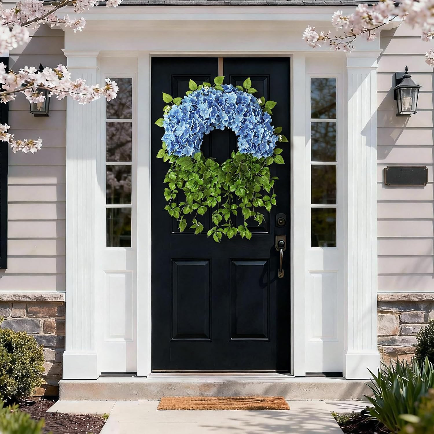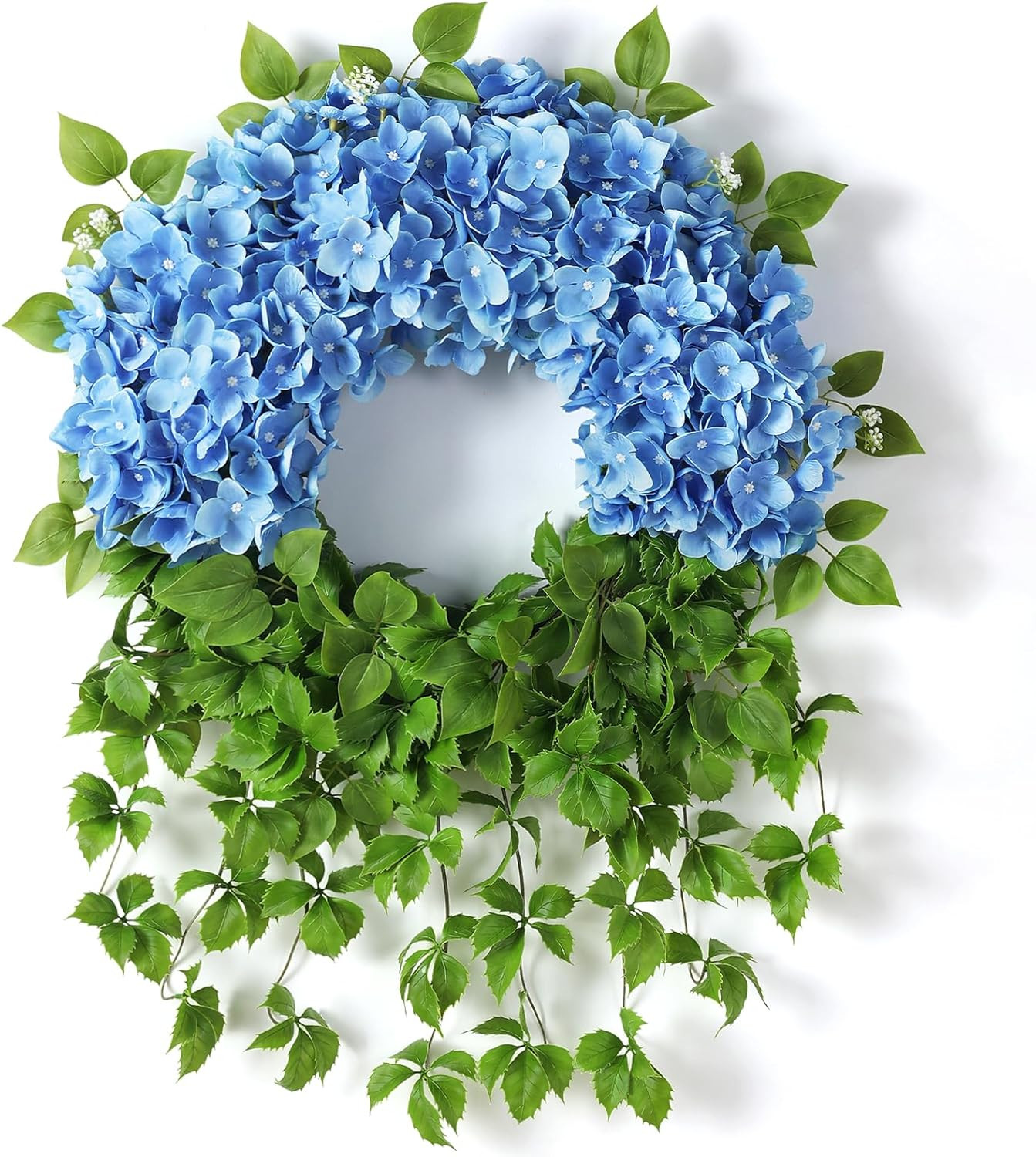 Artificial Blue Hydrangea Wreath for Front Door and Home Decor 23