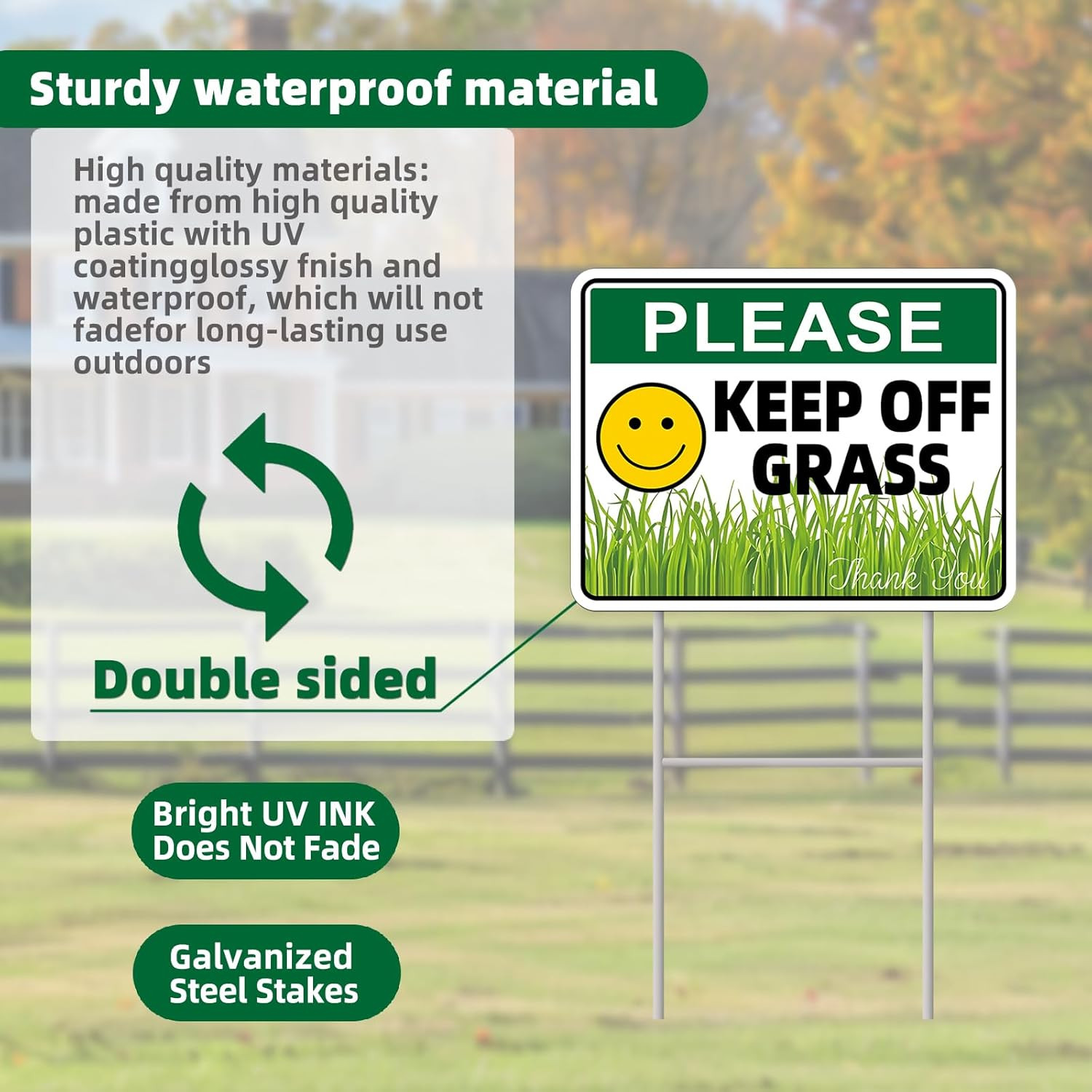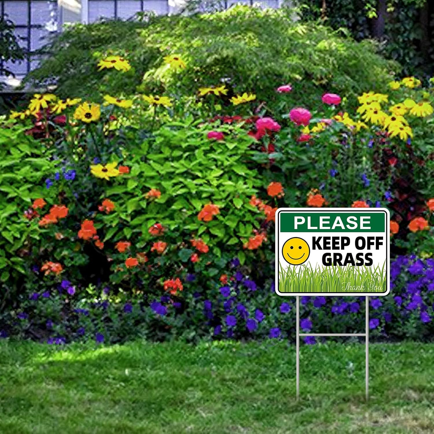 Keep Off Grass Sign Set, 2-Pack Double-Sided H-Metal Stakes, 13x10