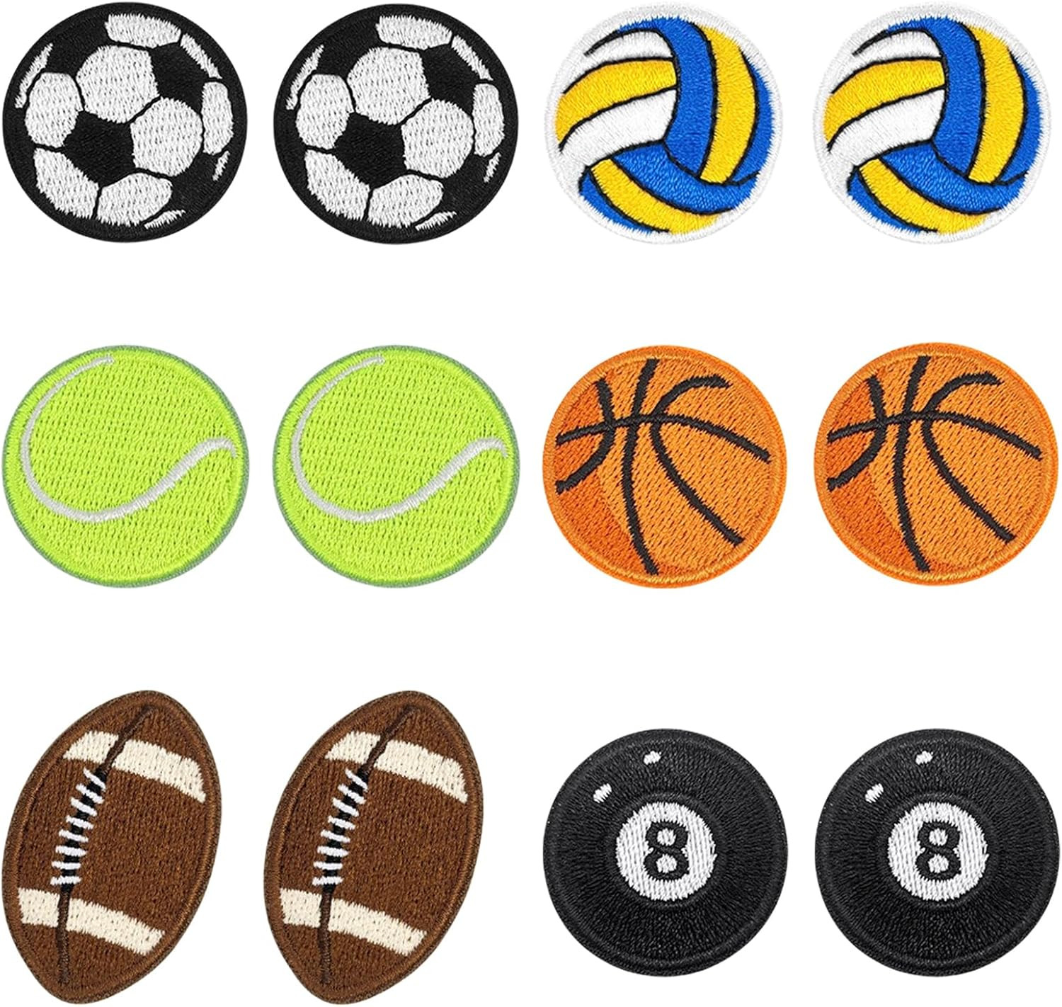 12 Pcs Embroidered Iron-On Sports Patches for Kids and Students