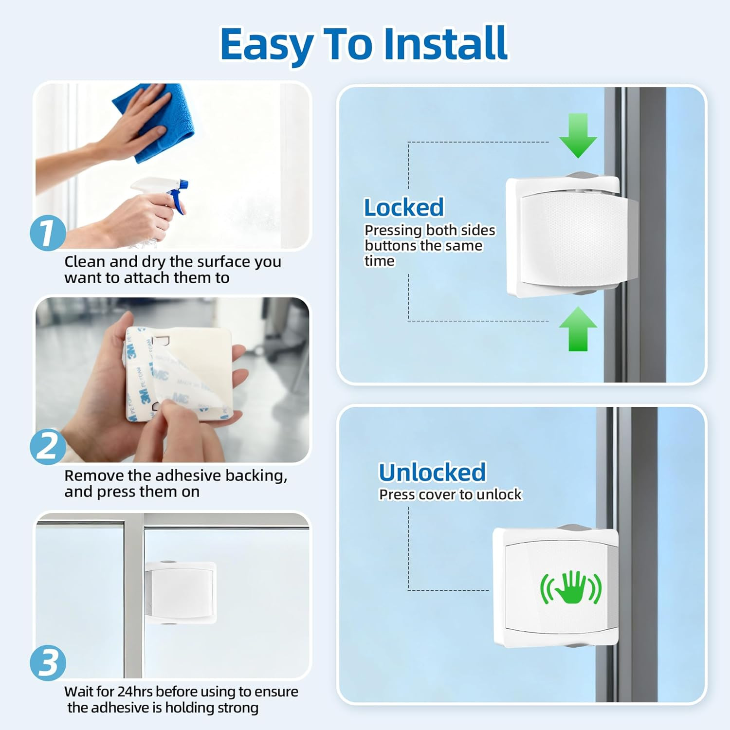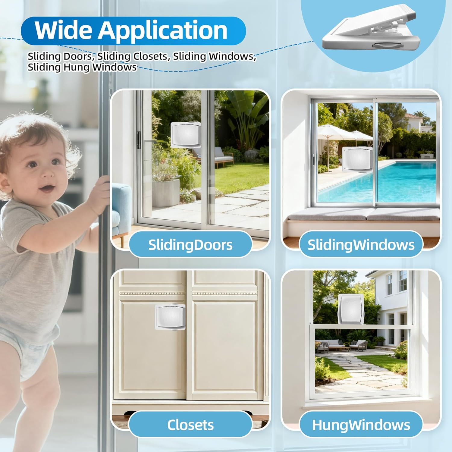 2 Pack Sliding Door Lock with 3M Adhesive - Child Safety Sliding Glass Door Lock