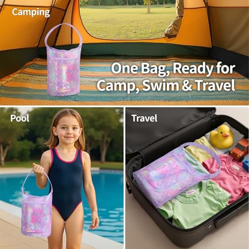 Kids Mesh Shower Caddy - Small Portable Toiletry Tote Bag for Purple Mermaid