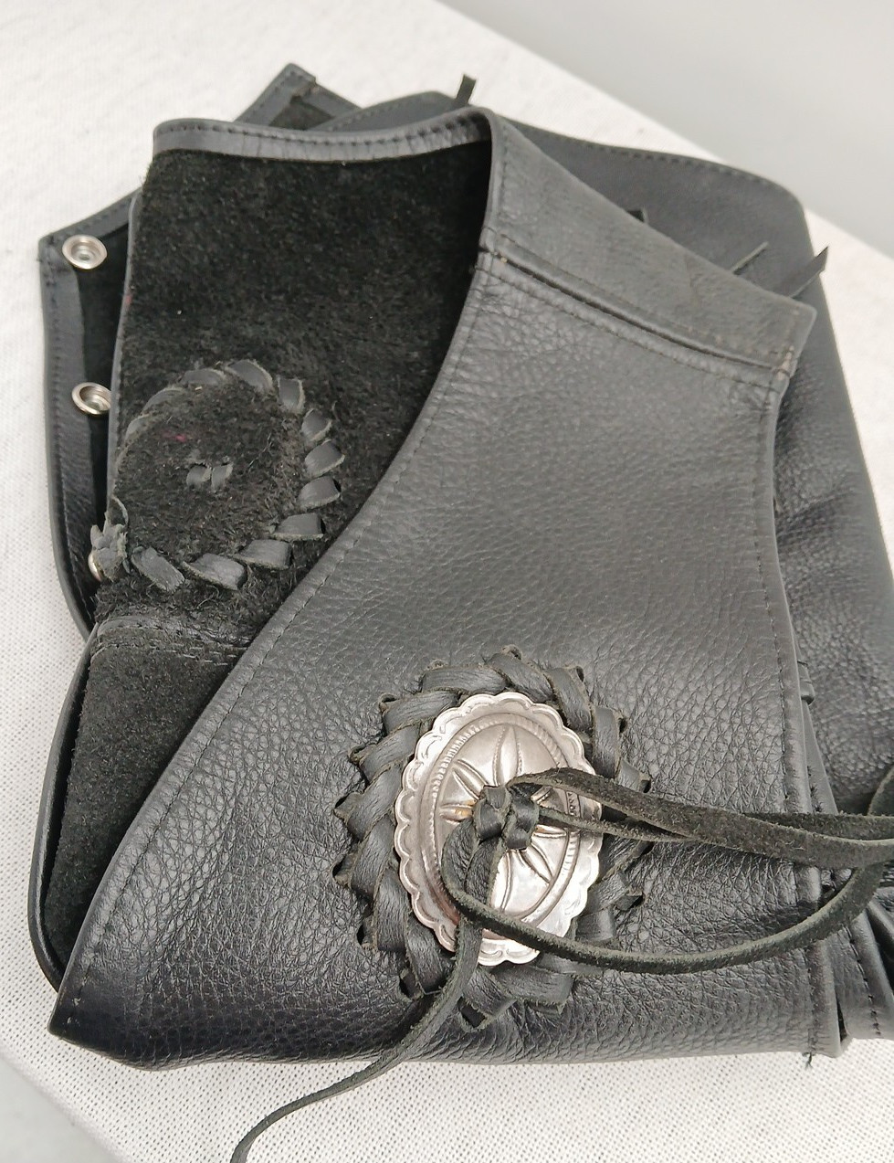 как выглядит Vintage Small Womans Black Leather Vest Measures 34" Chest 25" Length Fringes фото