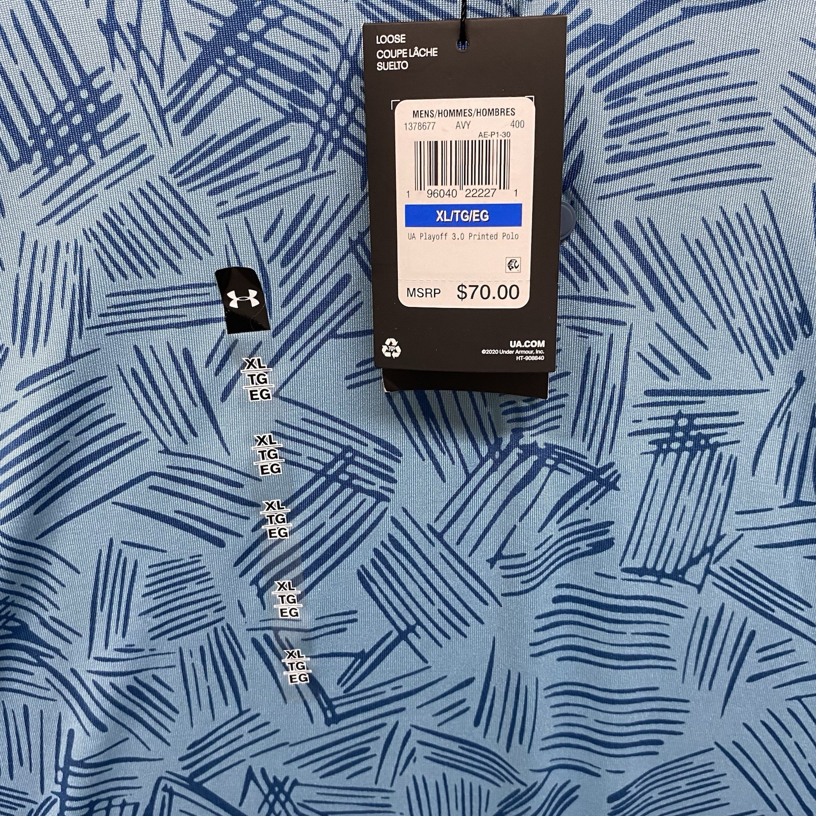Men s Under Armour The Playoff Polo Golf Blue Collar Shirt Stretch Size XL New