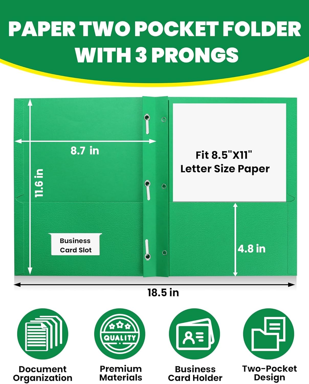 2 Pocket Folders with Prongs 25 Pack, Green , Paper Folders with 2 Pockets