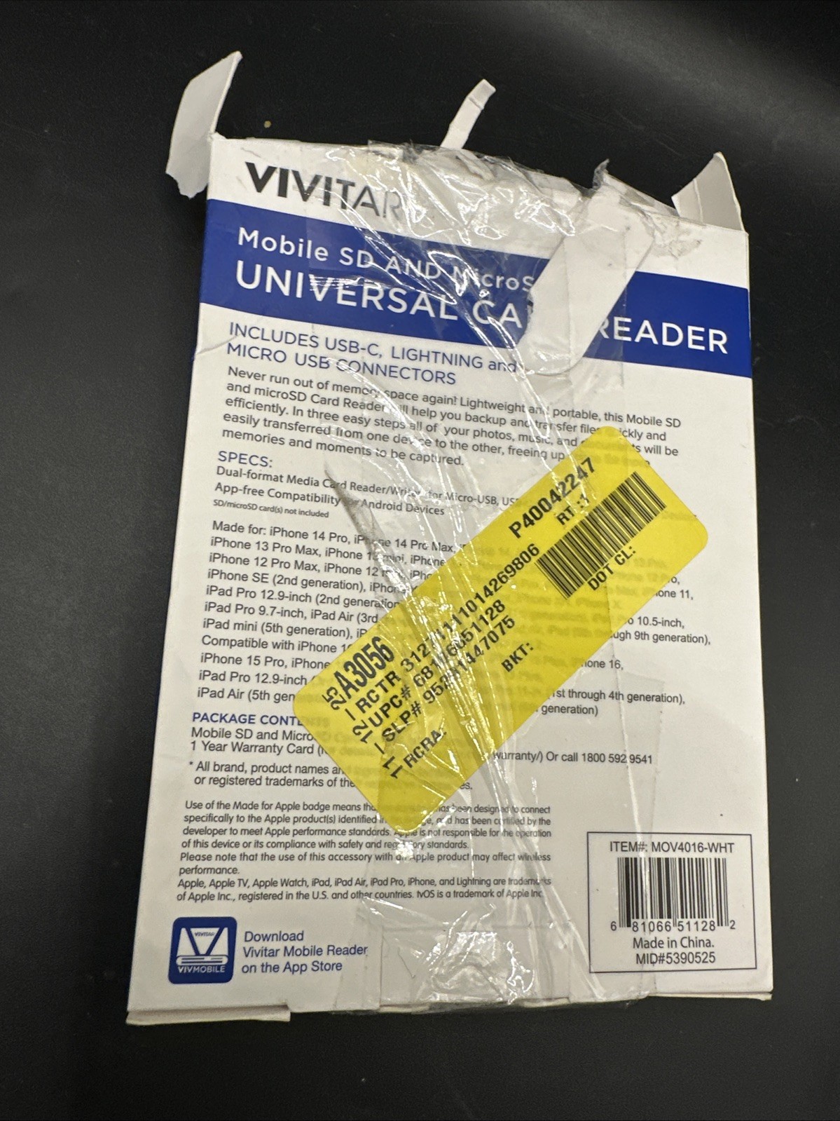 Vivitar Mobile SD and MicroSD Universal Card Reader White MOV4016 V1 Box/Retail