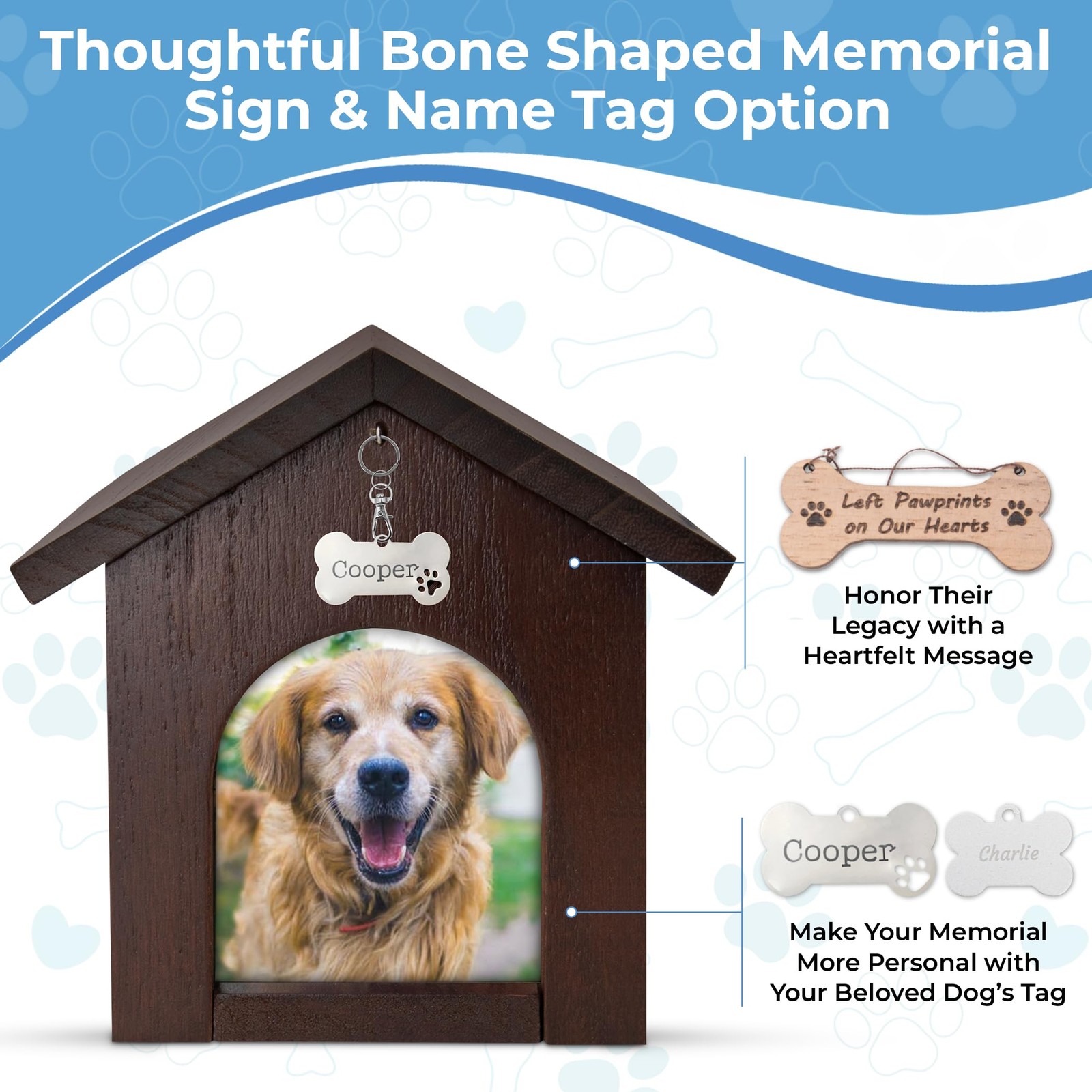 Included Components: Doghouse Urn Box, Hanging Memorial Dogbone Sign