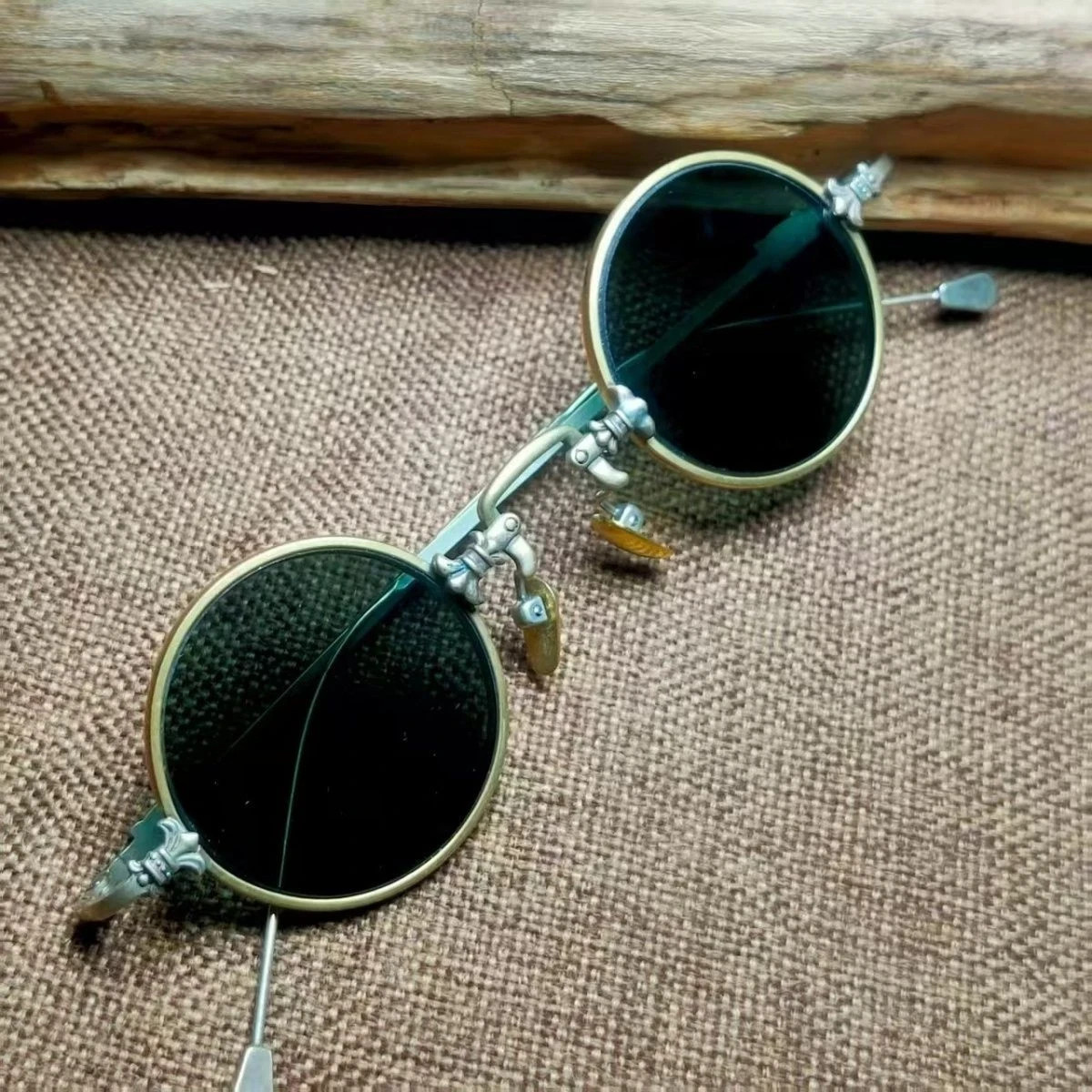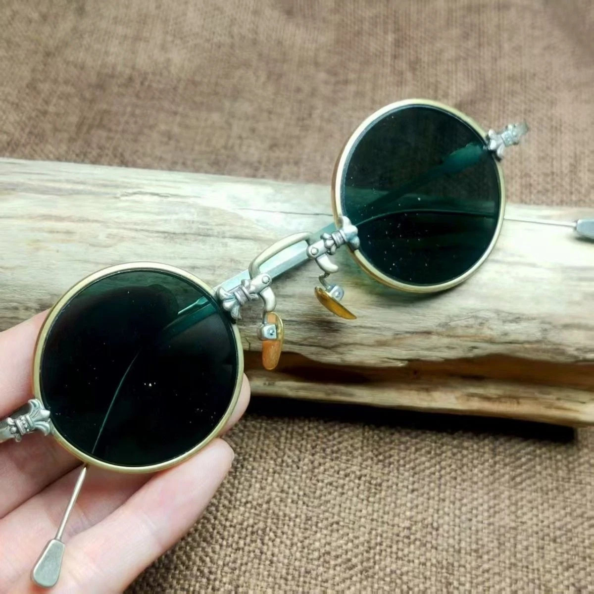 как выглядит Vintage Copper Frame Crystal Stone Round Eyeglasses Brown Antique Sunglasses фото