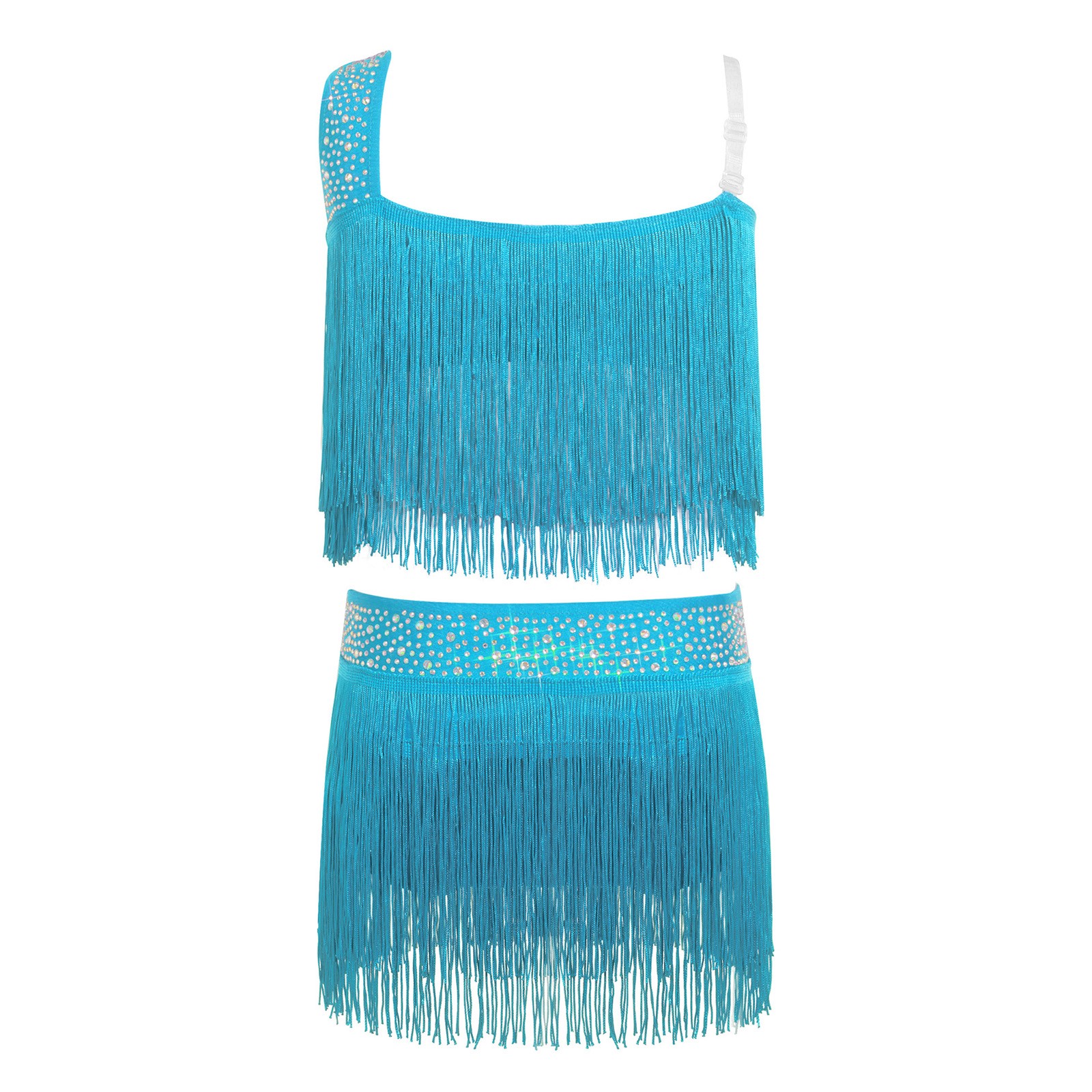 Kids Girls Tassel Cutout Dancewear Fringe Outfit Ruched Set Samba Ballroom Team