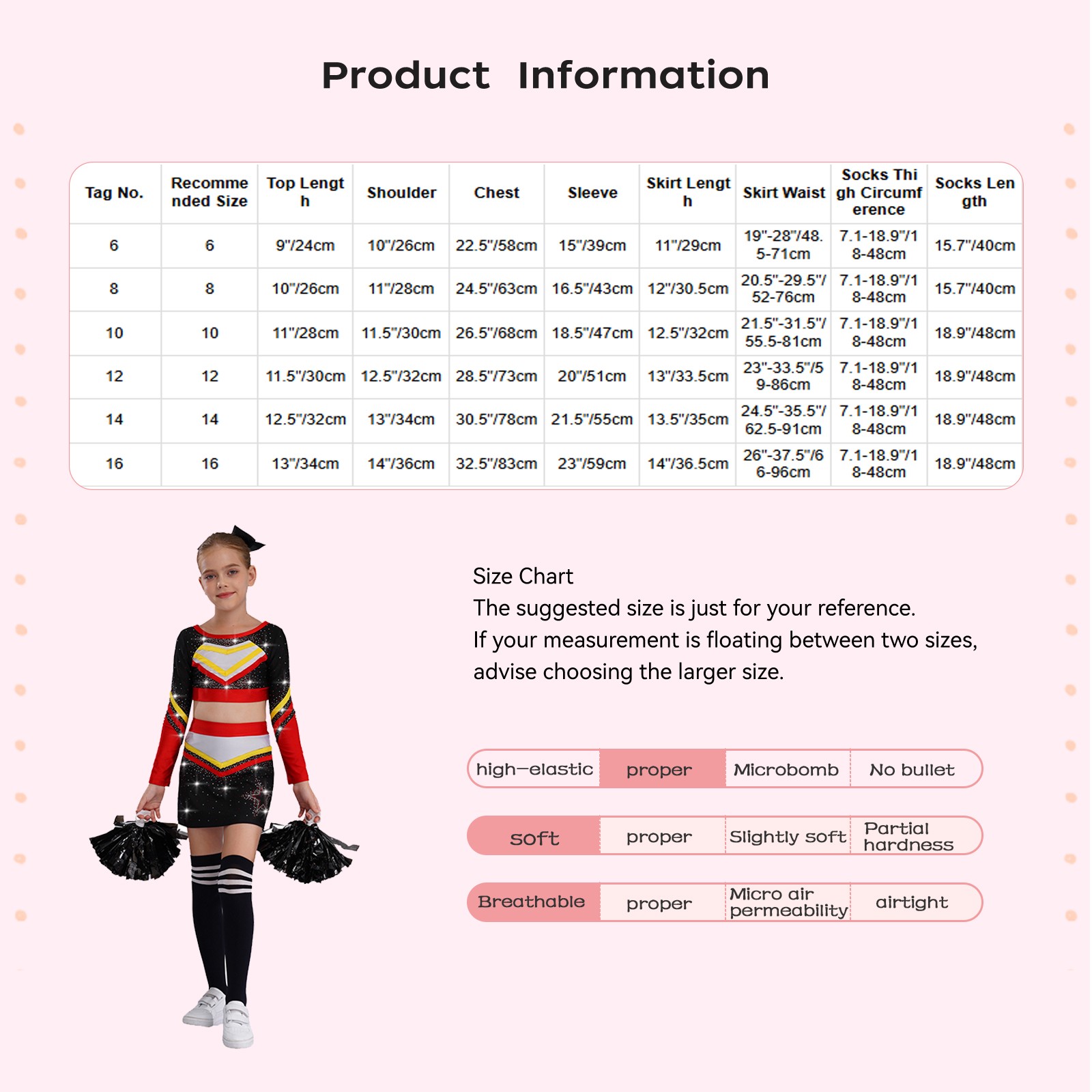 Girls Outfits Musical Set Dancewear Cheerleading Kids Cheer Leader Costume Show