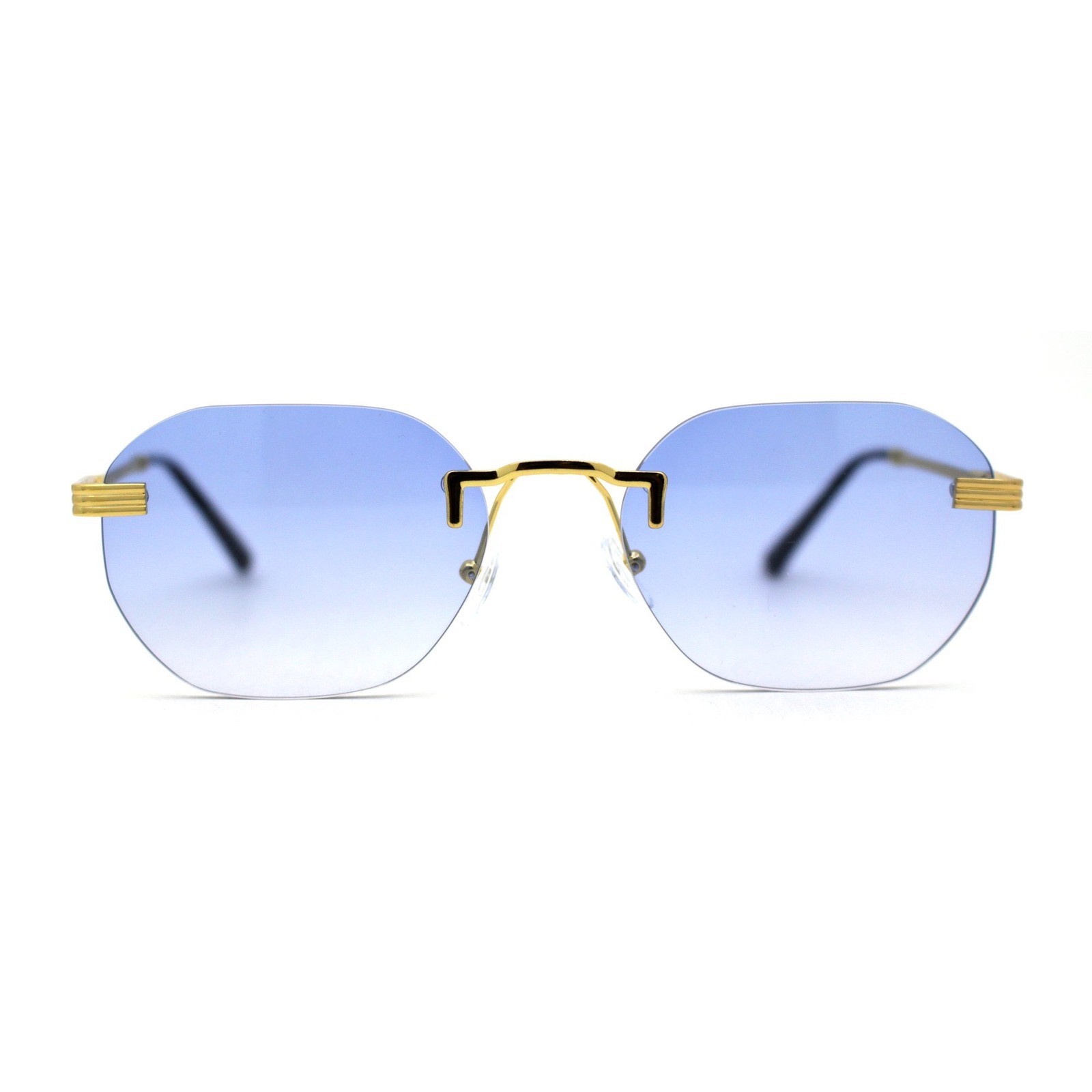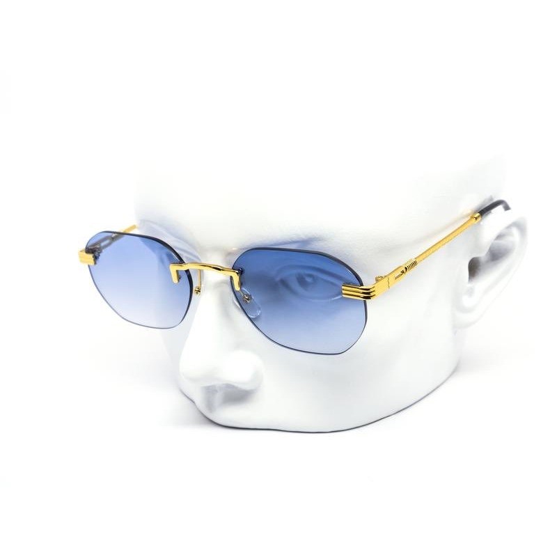 Rimless Sunglasses Blue Lens Gold Frame Fashion Trendy Hip Hop Street Wear Gafas