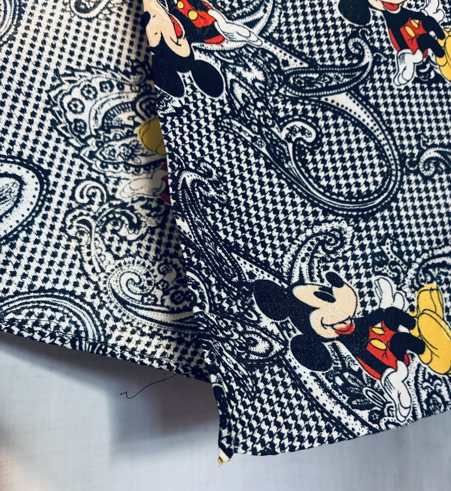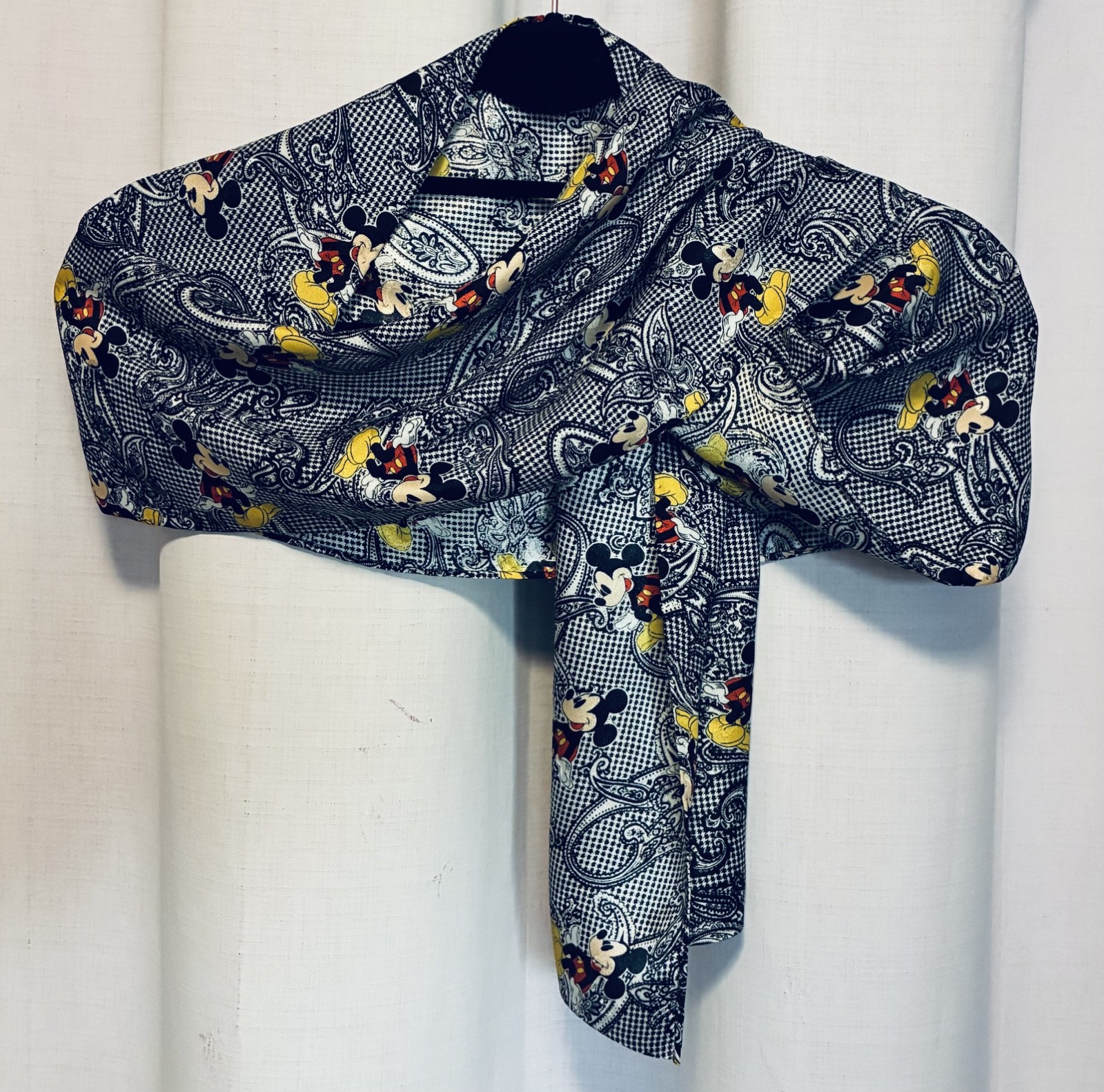 как выглядит Vintage Silky Mickey Mouse Disney Scarf  Black White Paisley Houndstooth фото