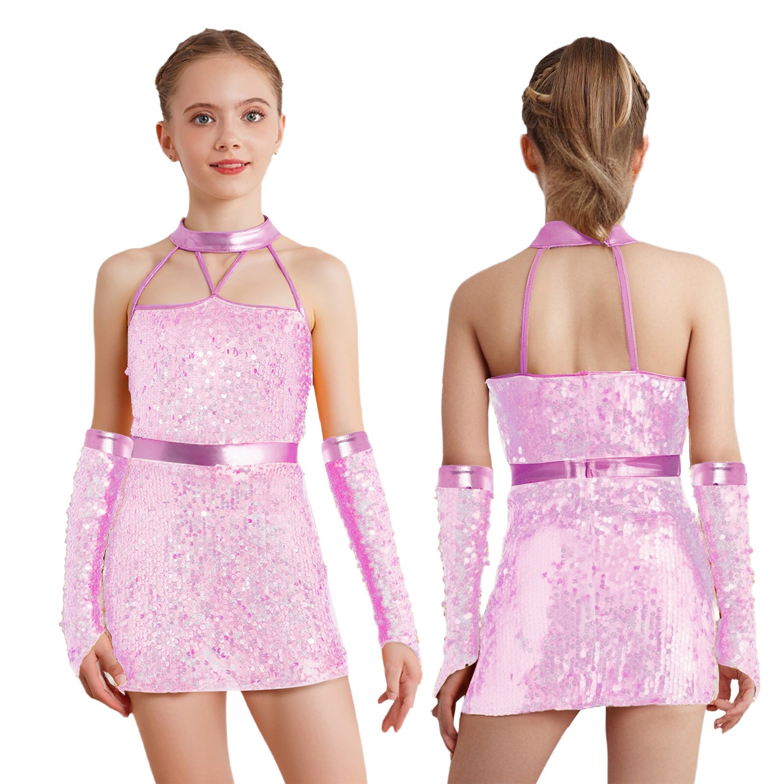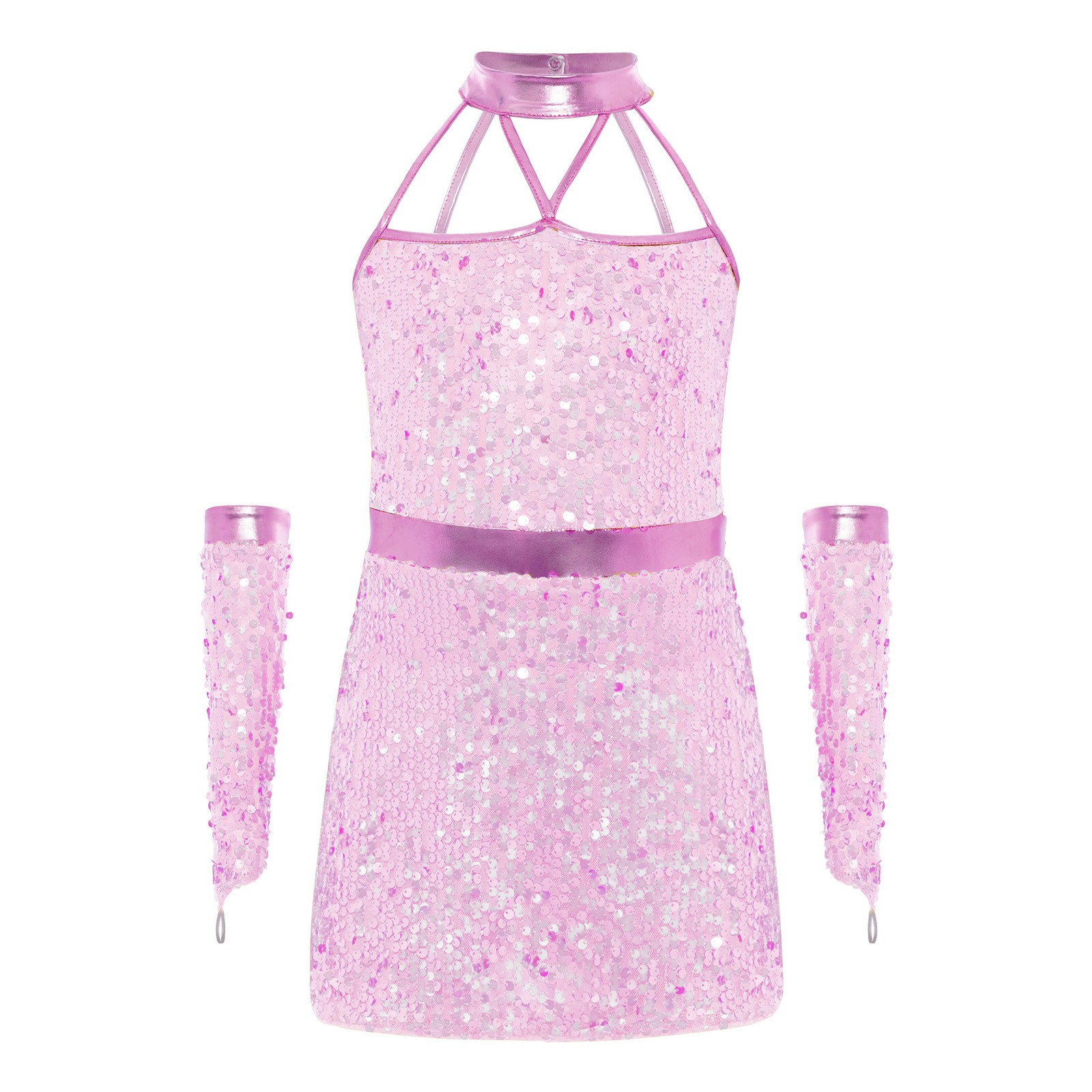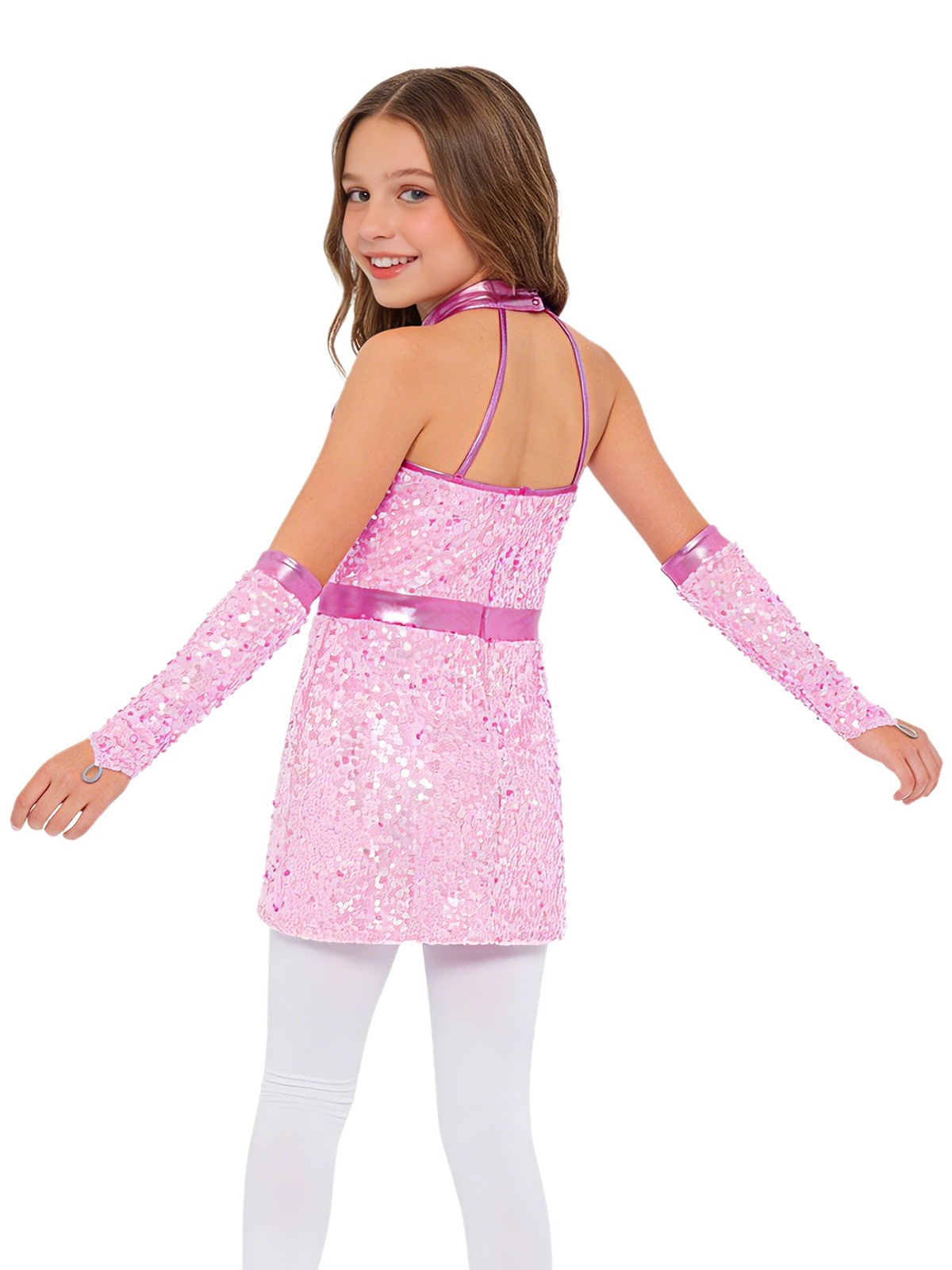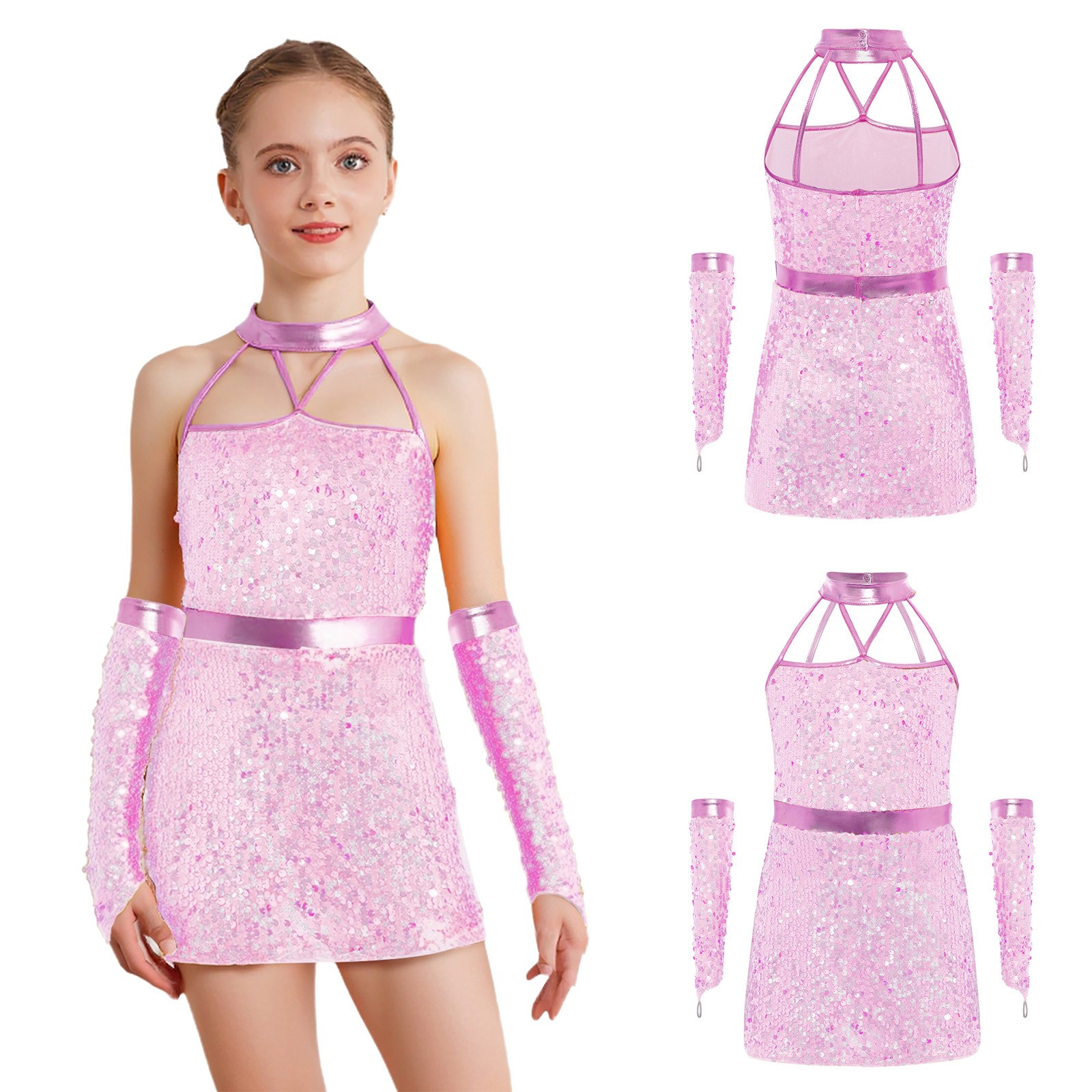 как выглядит Kids Girls Dancewear Sparkling Dance Dress Tango Costume Sleeveless Ballet Jazz фото