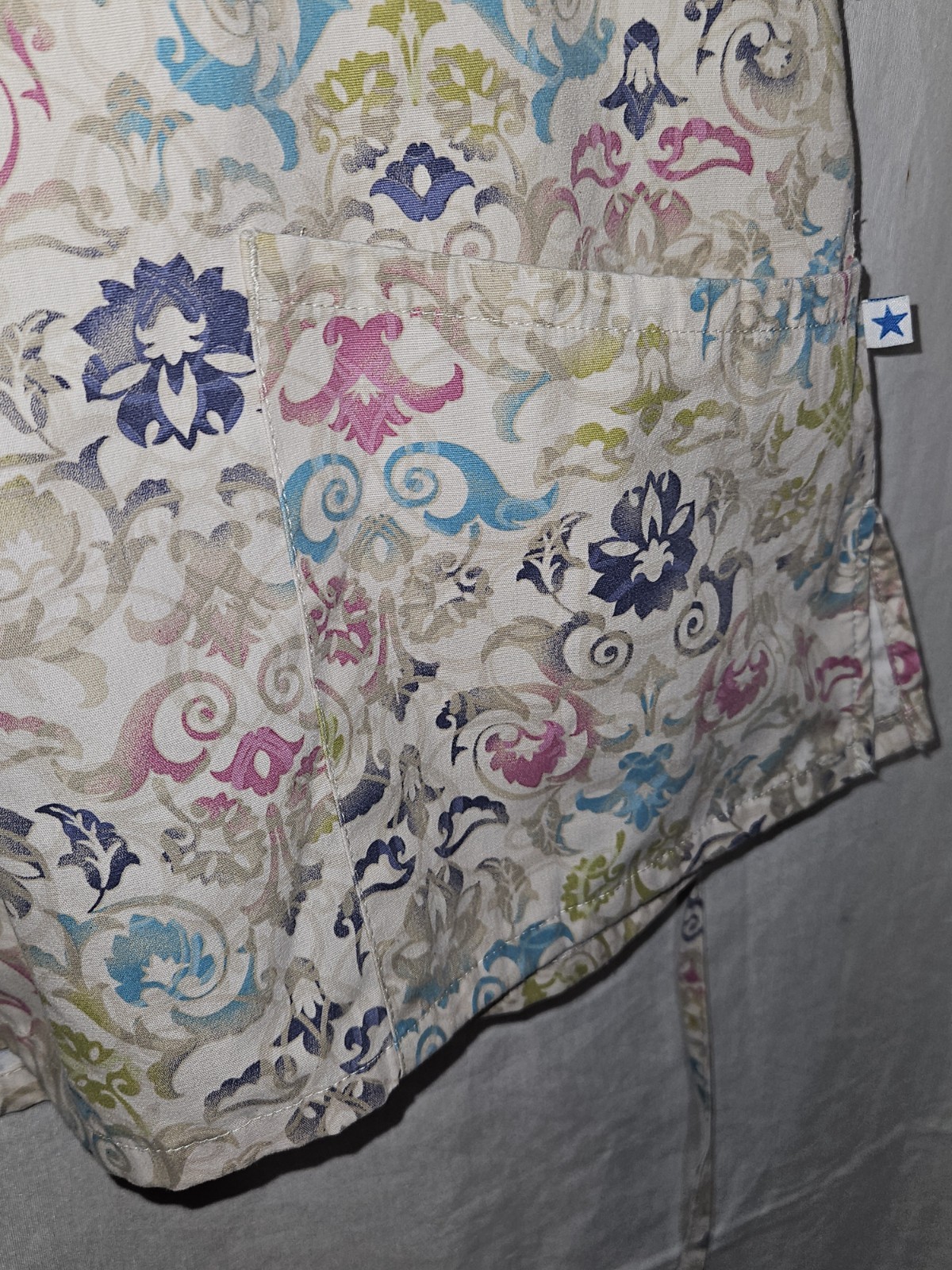 как выглядит Womans size small unbranded short sleeve floral design scrub top. A8 фото