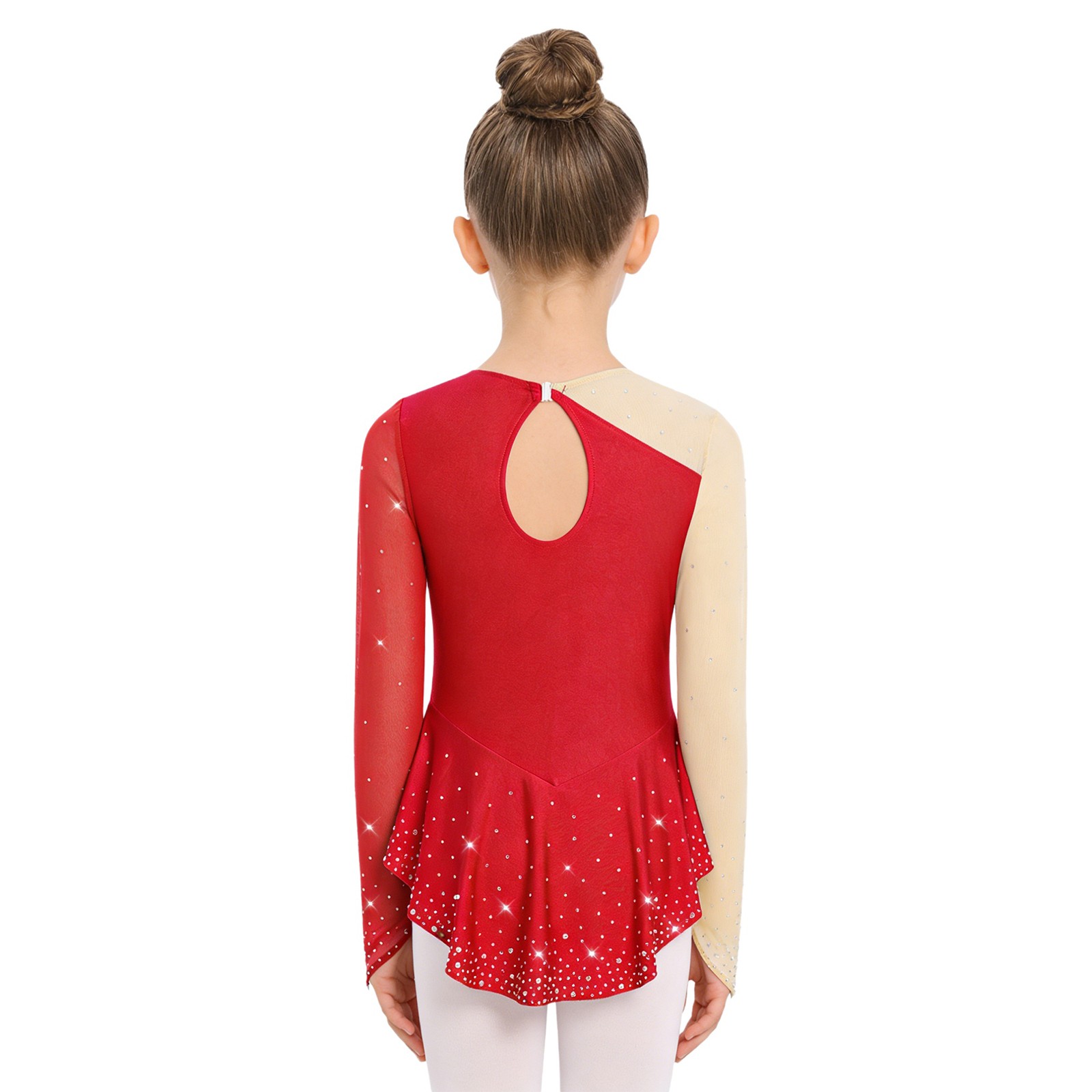 US Girls Figure Ice Skating Dress Rhinestone Ballet Skirted Leotard Performance