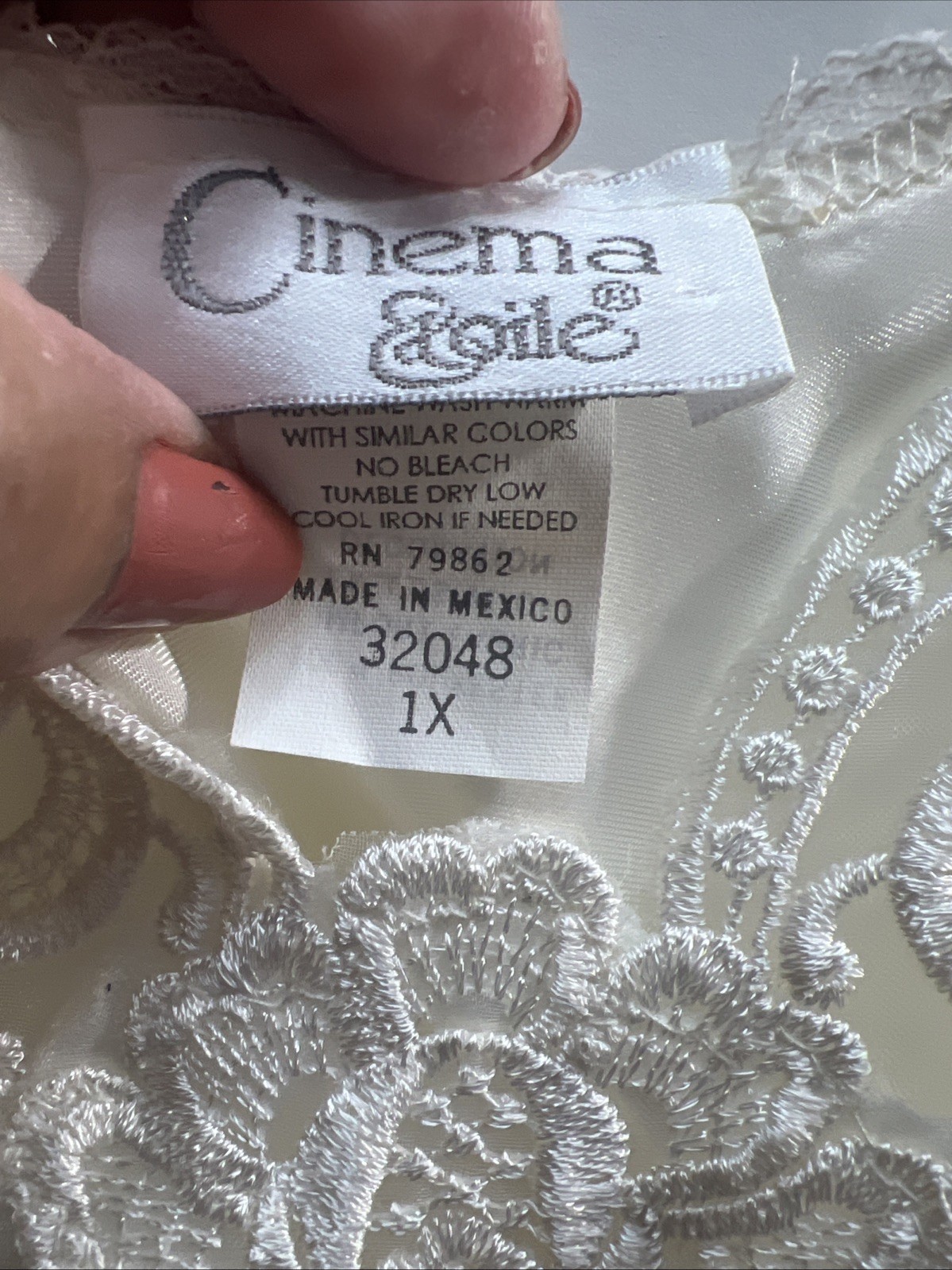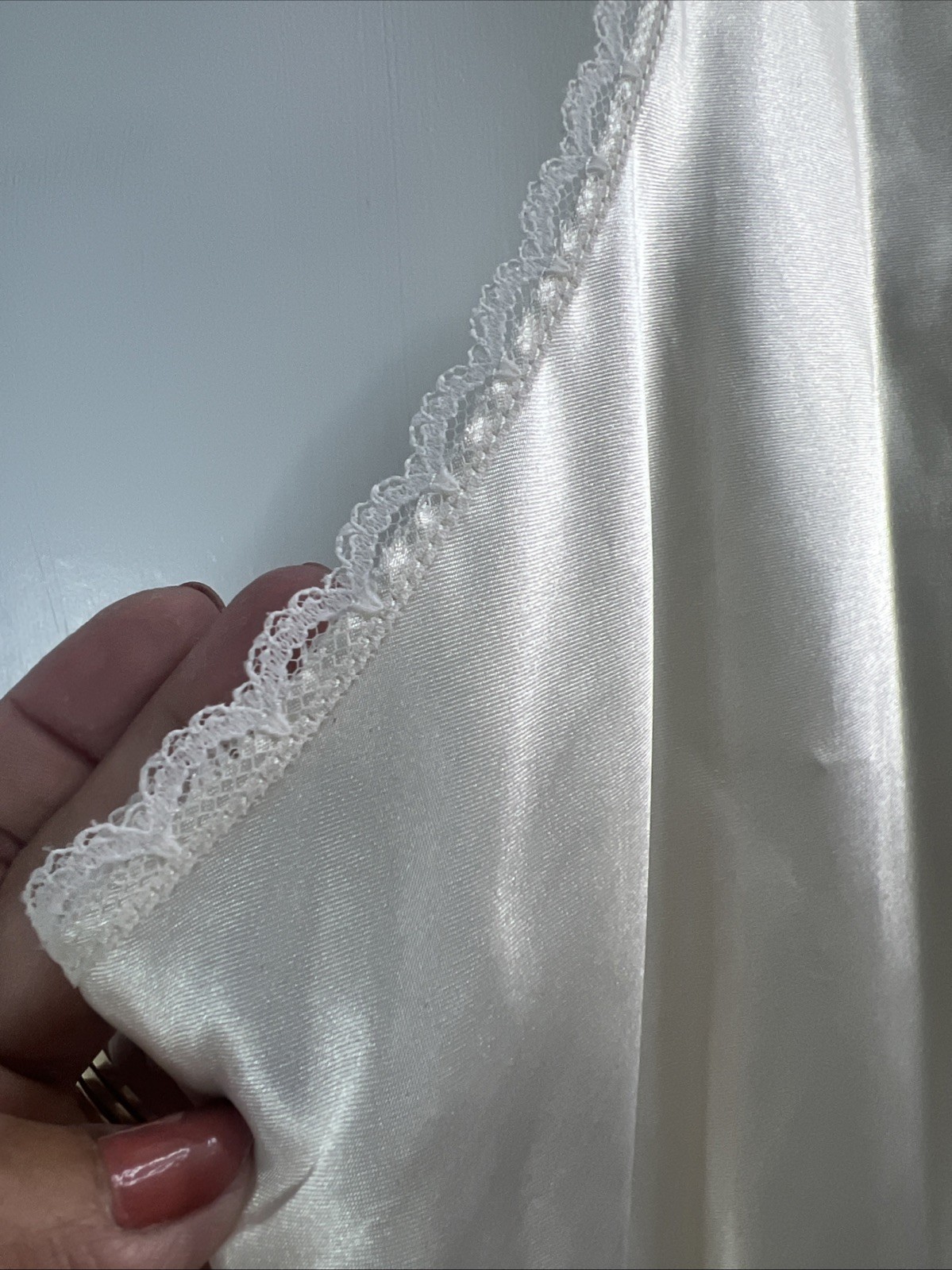 Vintage 80s Cinema Etoile Satin Camisole Tank Top -1X Lace V-Neck Trim Ivory