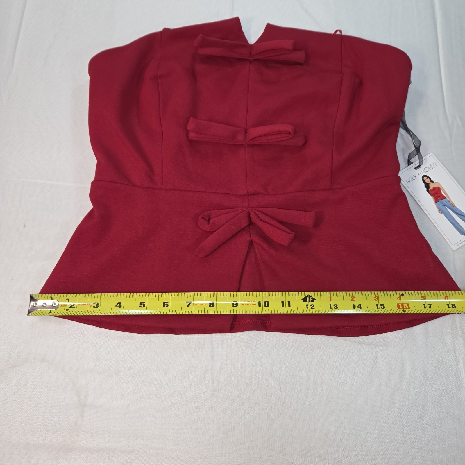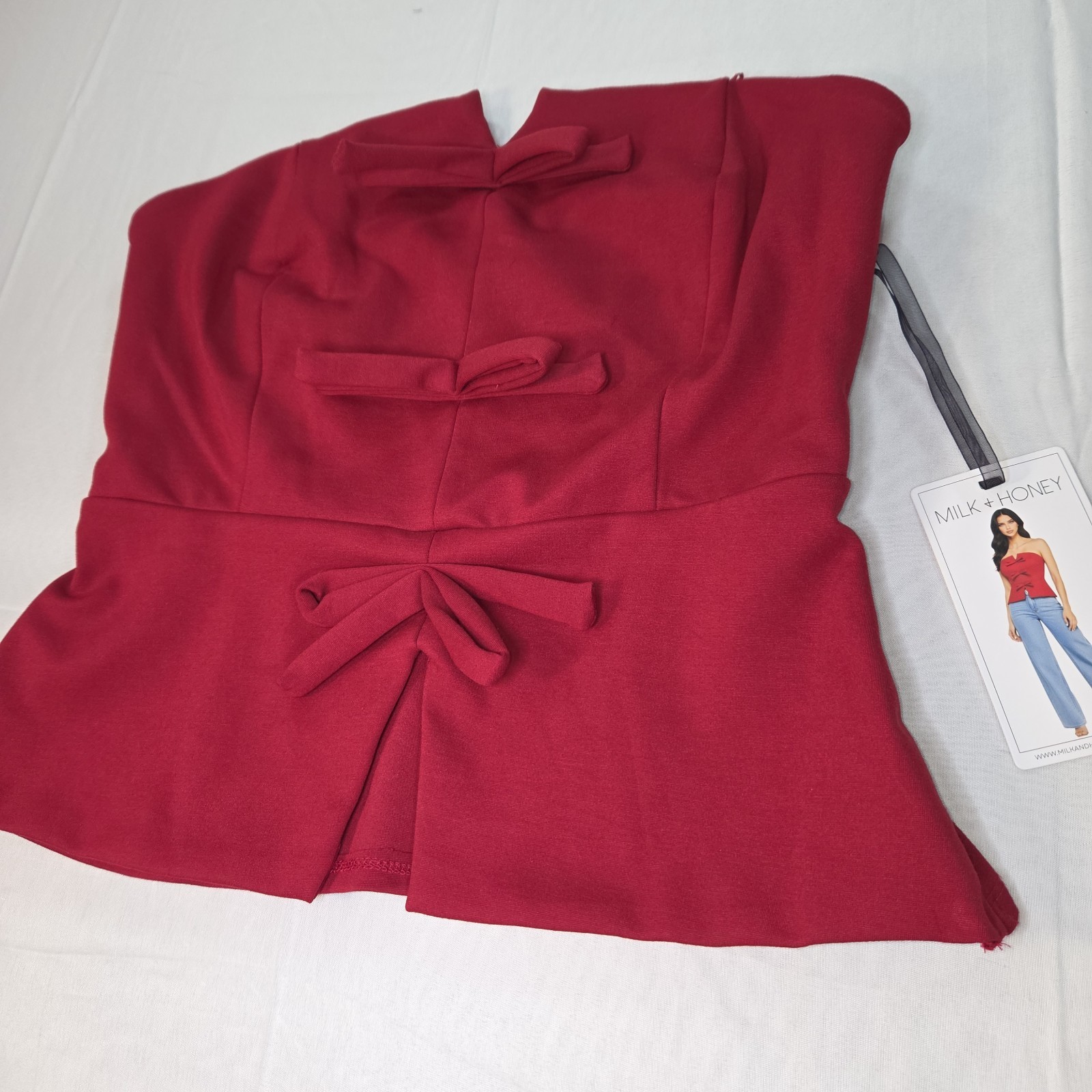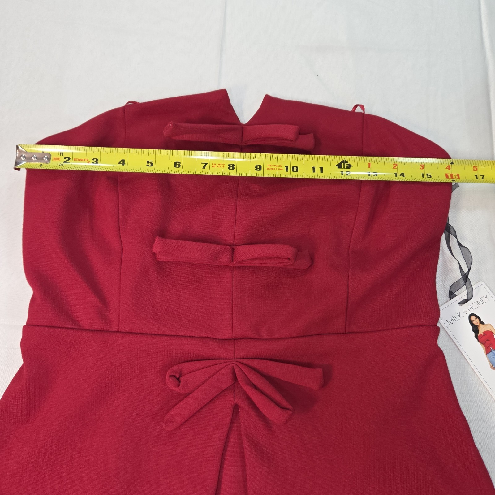 NWT Milk Honey Red Bustier With Bow Accents And Side Zip.