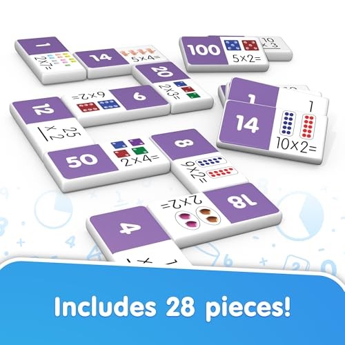 Multiplication Dominoes Game Set, 28 Pieces, Ages 7-9, Math Skills, Grade 2-3
