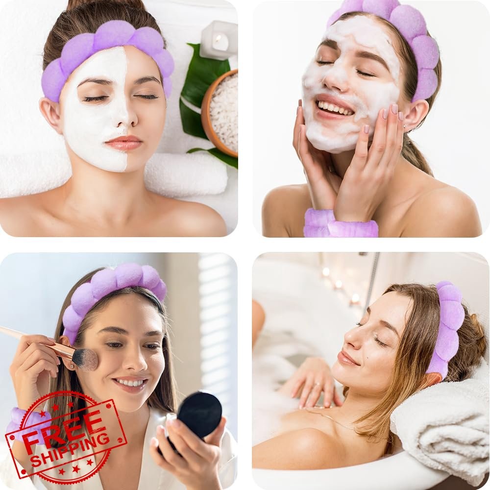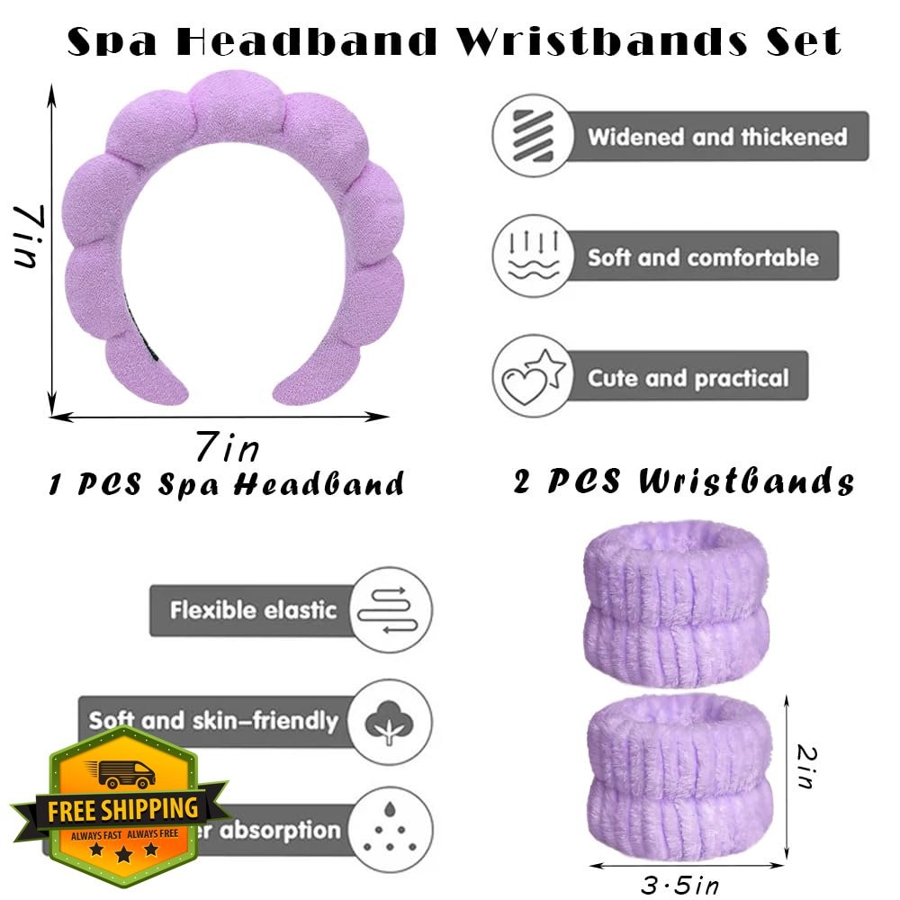 Spa Headband Wristband Set Purple Terry Cloth Makeup Wash Face Hairband