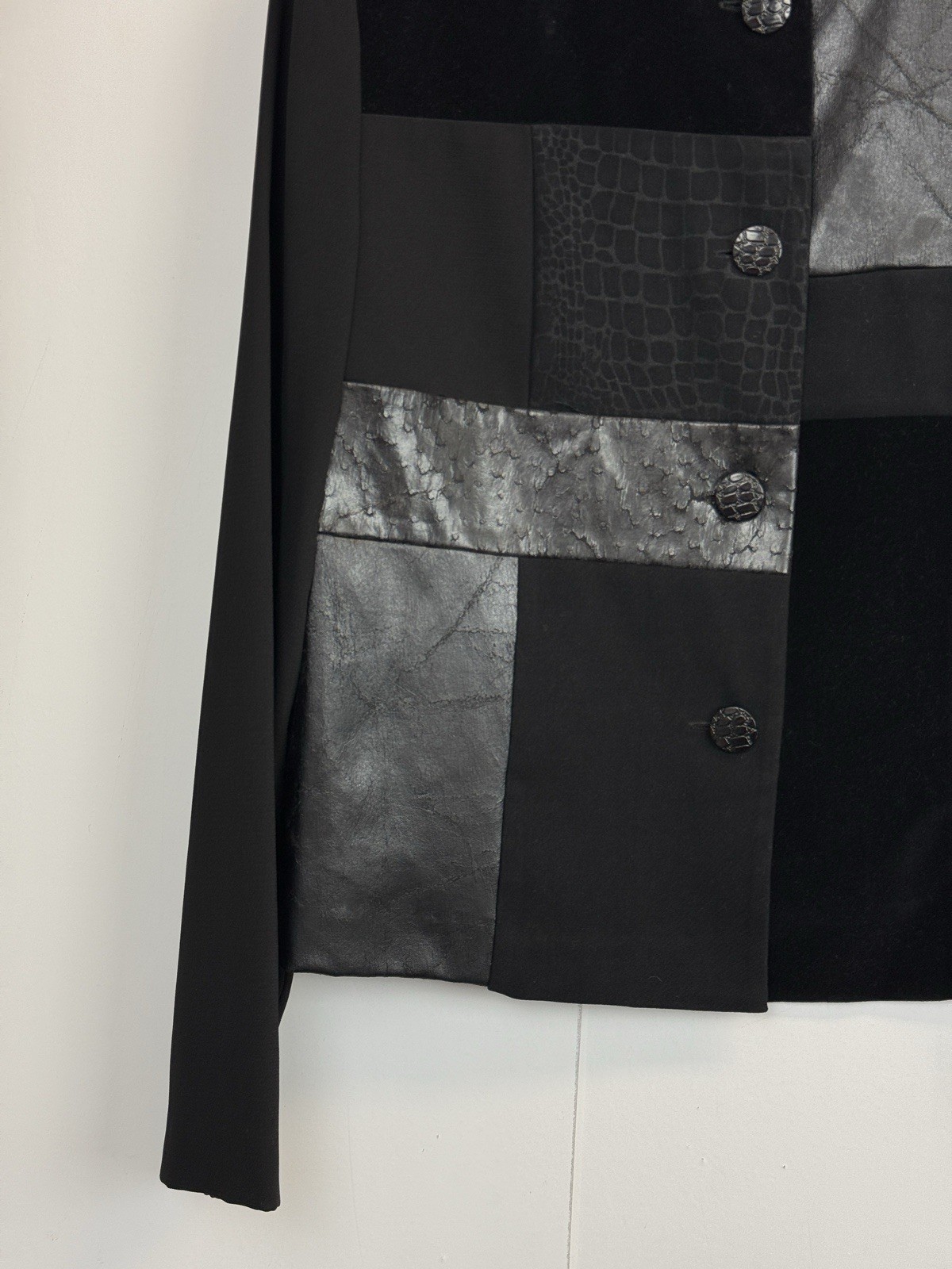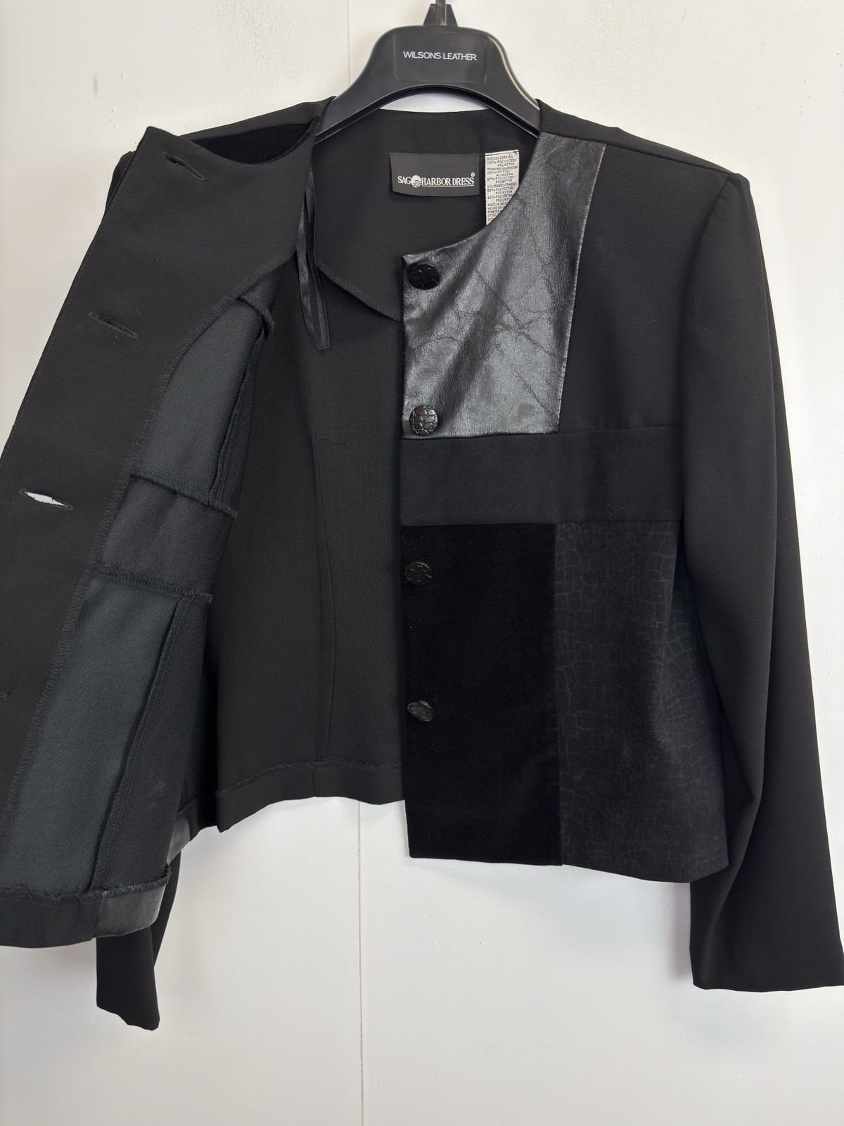 как выглядит Sag Harbor Women s 10 Blazer Jacket Patchwork Button Front Faux Leather Black фото