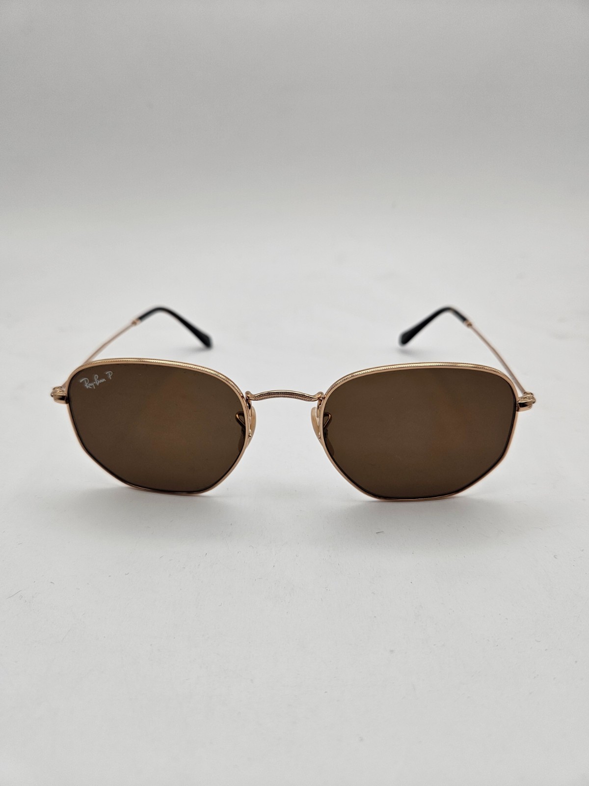 Ray-Ban RB3548N Hexagonal Gold Brown Polarized Sunglasses 54-21 w/ Case