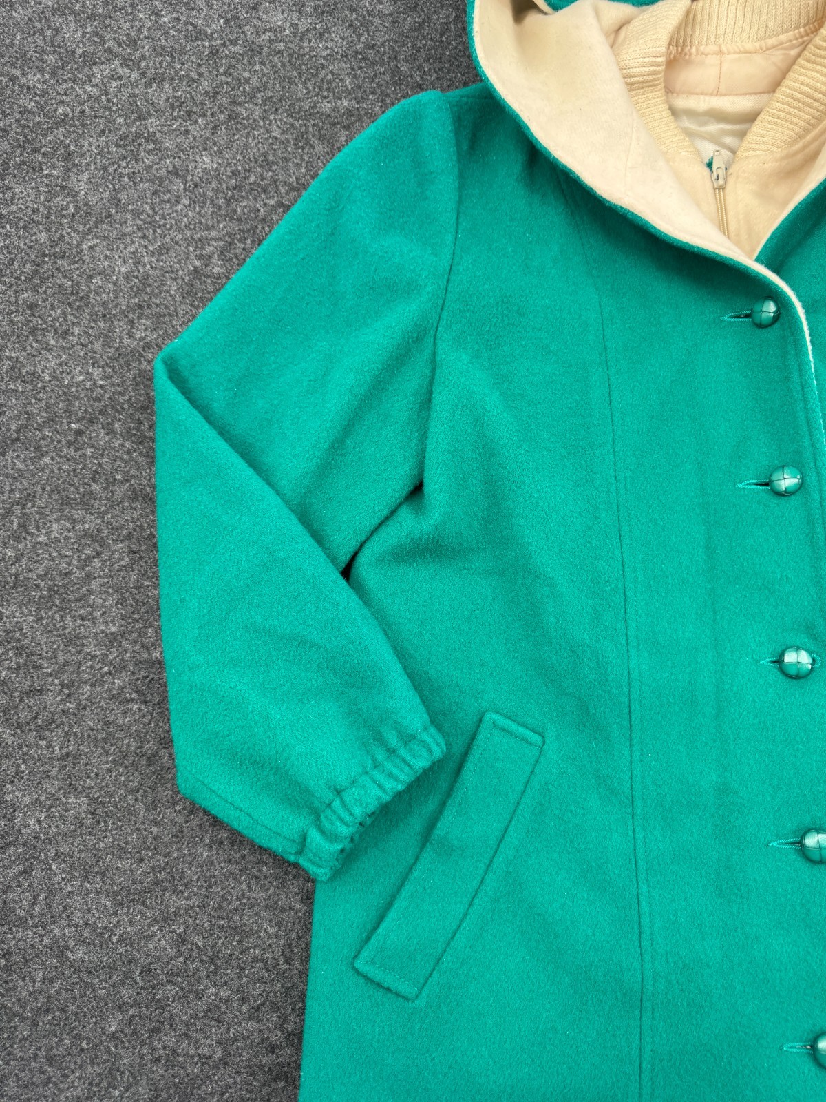 как выглядит Vintage Mackintosh Vest Coat Women Medium Green Wool Layered Button Front Hooded фото