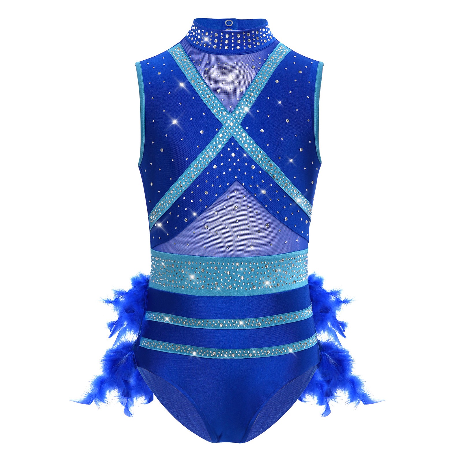 Girls Leotard Shiny Bodysuit Mesh Patchwork Gymnastics Dancewear Dance Sparkly