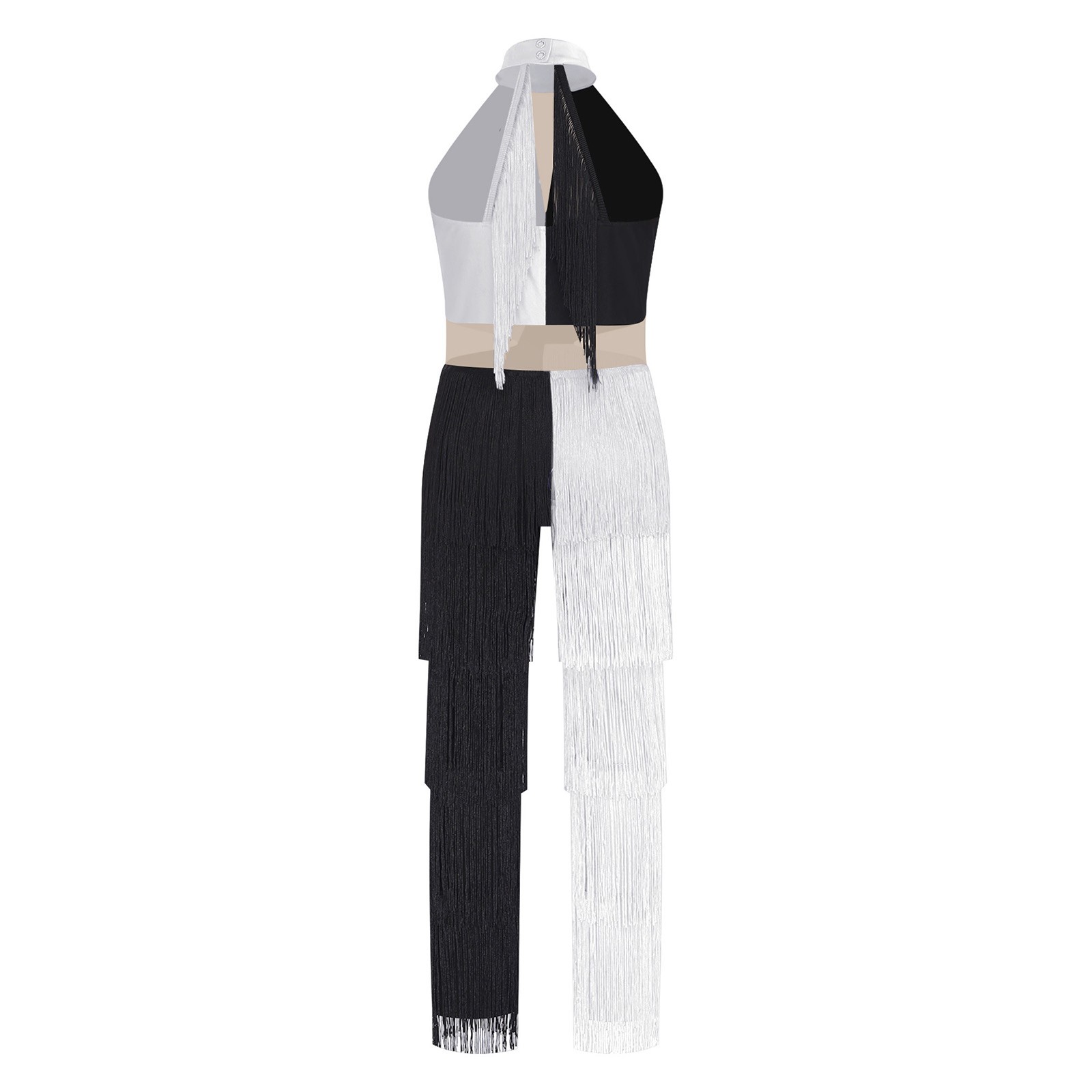 Kids Girls Dancewear Color Block Jumpsuit Carnival Bodysuit Shiny Sequin Latin