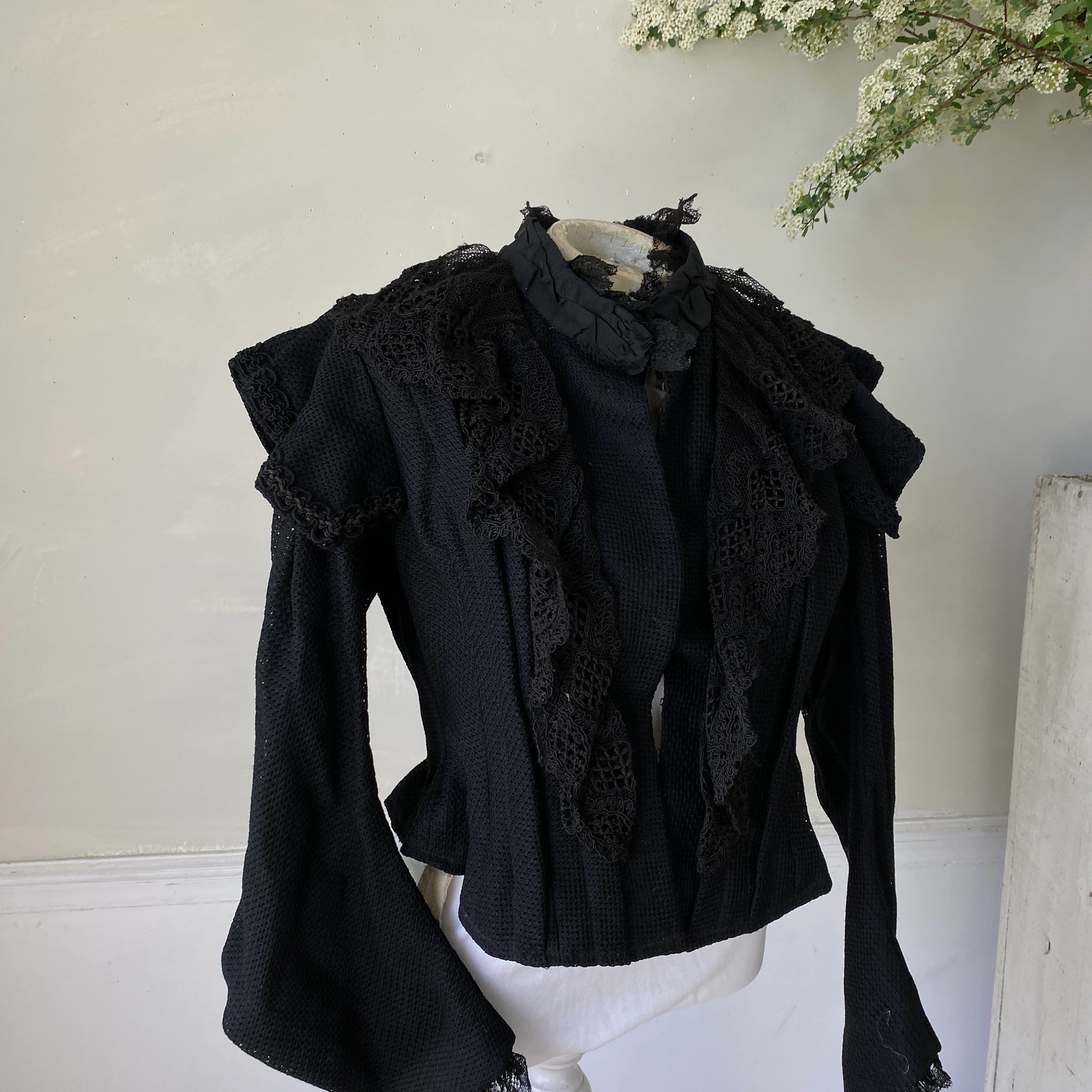 Textural Black Lace Bodice Victorian 1880s Women 39;s Bodice Structured Wool a