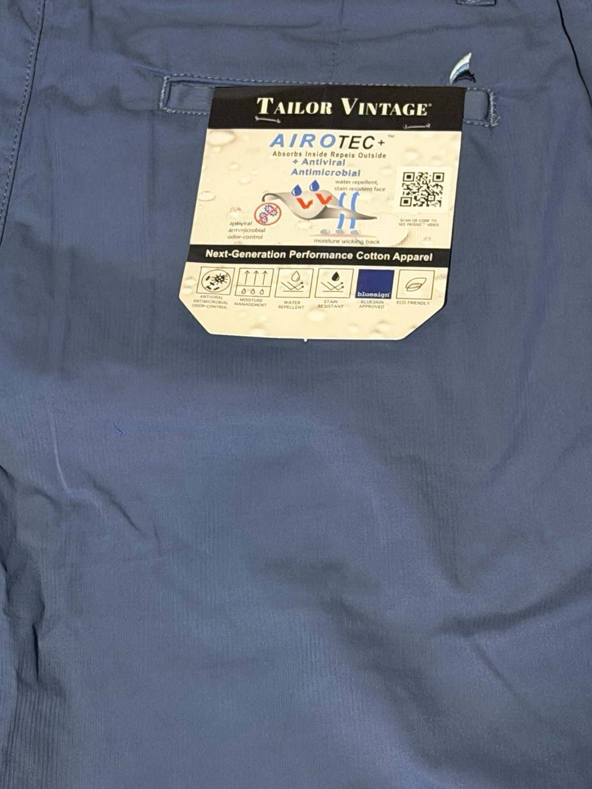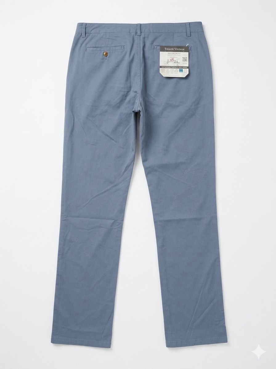 как выглядит Tailor Vintage Slim Fit Performance Pants Men Blue Cotton Twill Button Logo фото