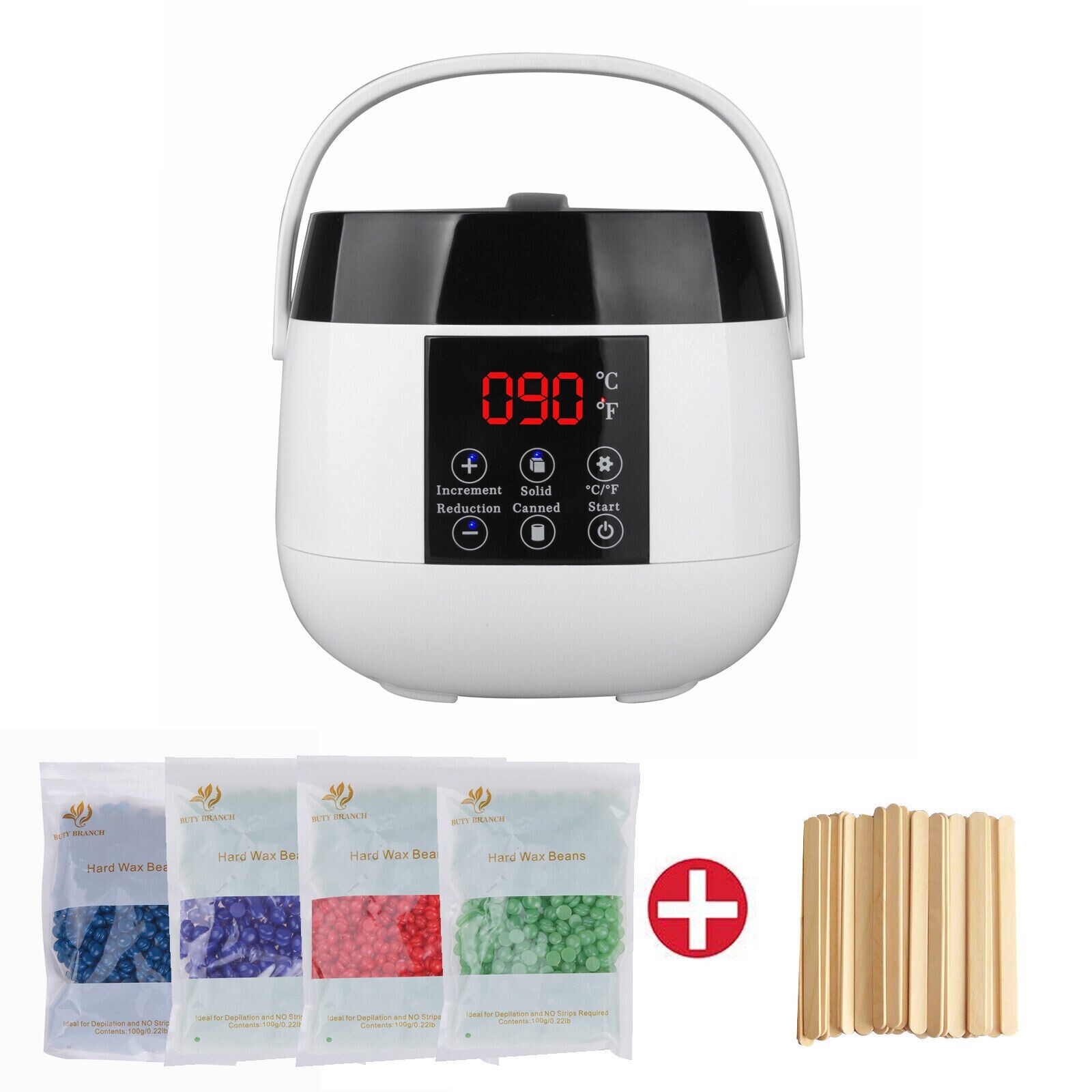 как выглядит Hot Wax Warmer Hair Removal Waxing Kit Electric 4 Bags Hard Wax Beans 20 Sticks фото