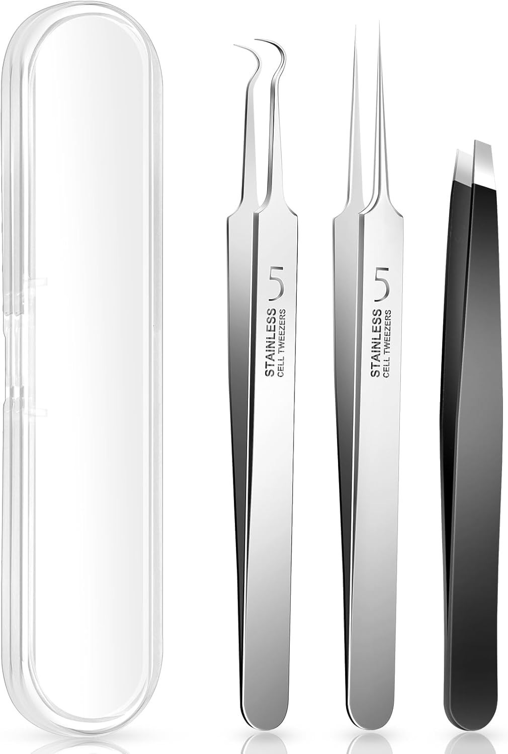 3PCS Blackhead Remover Tweezers, Pimple Popper Tool Kit with 2 Blackhead Extr...